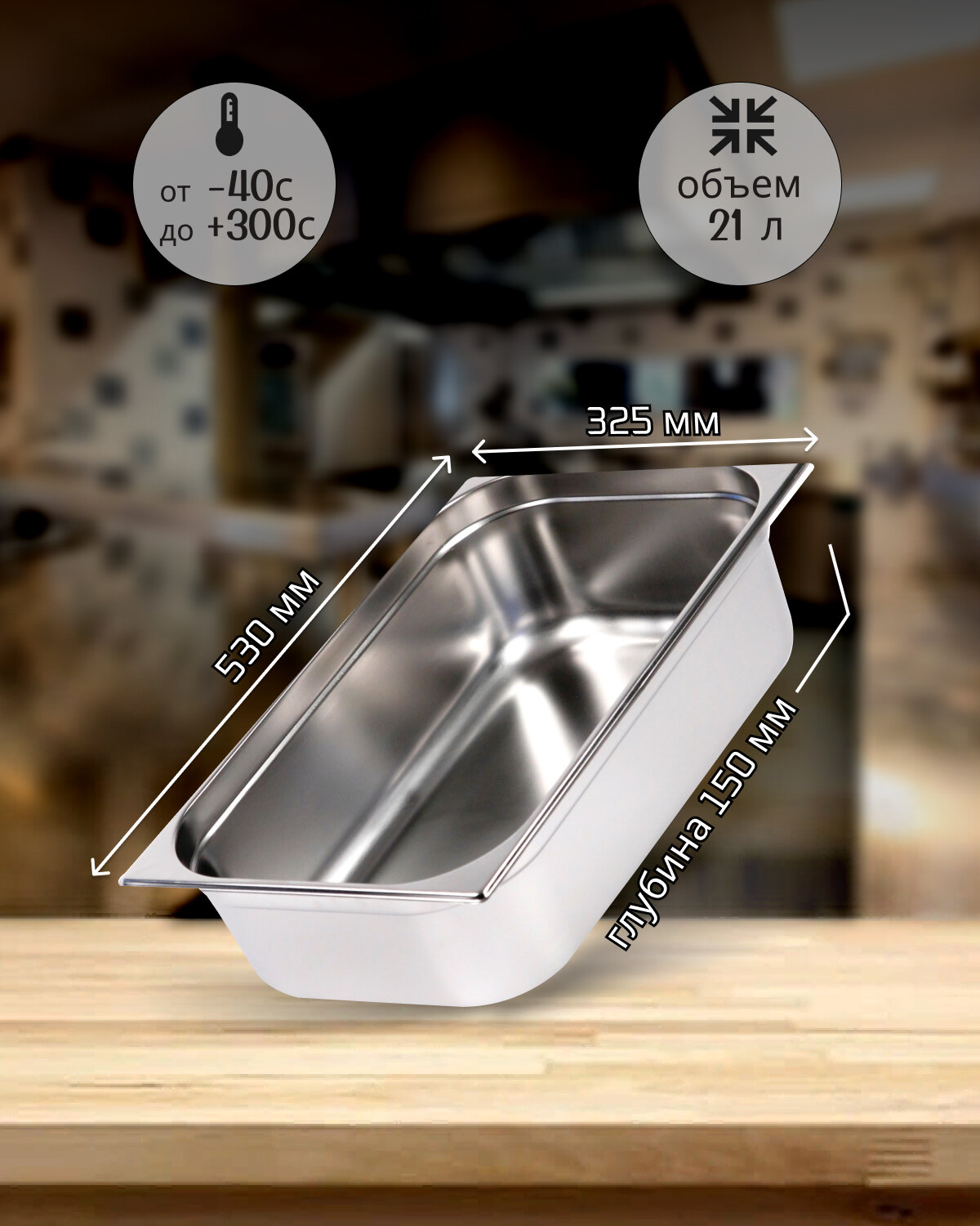 Гастроемкость LUXSTAHL Нержавеющая сталь, GN 1/1, 53х32,5х15 см