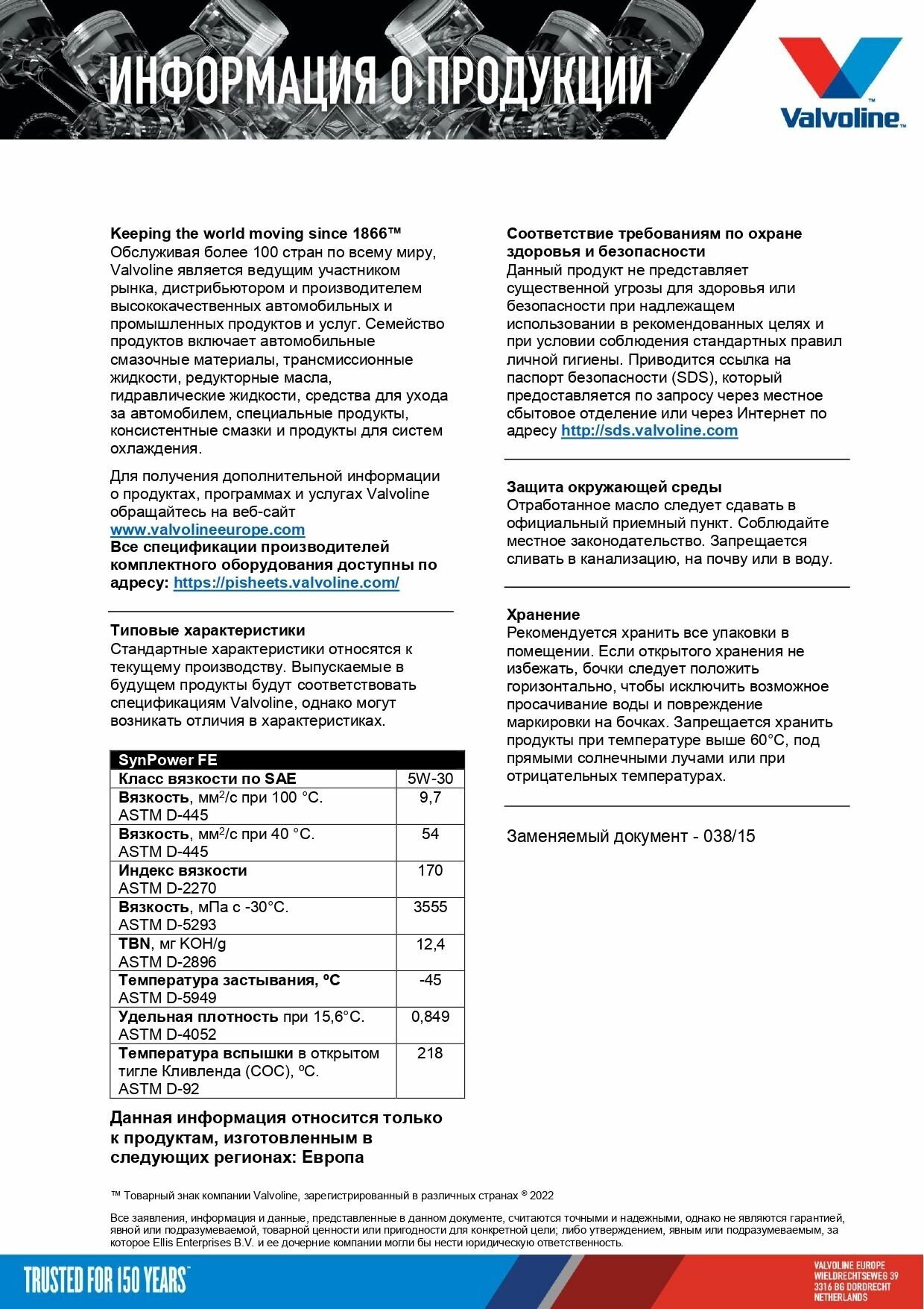 | Производитель | VALVOLINE |