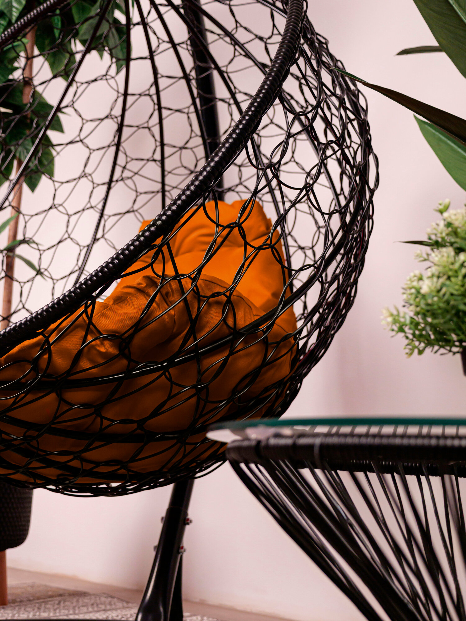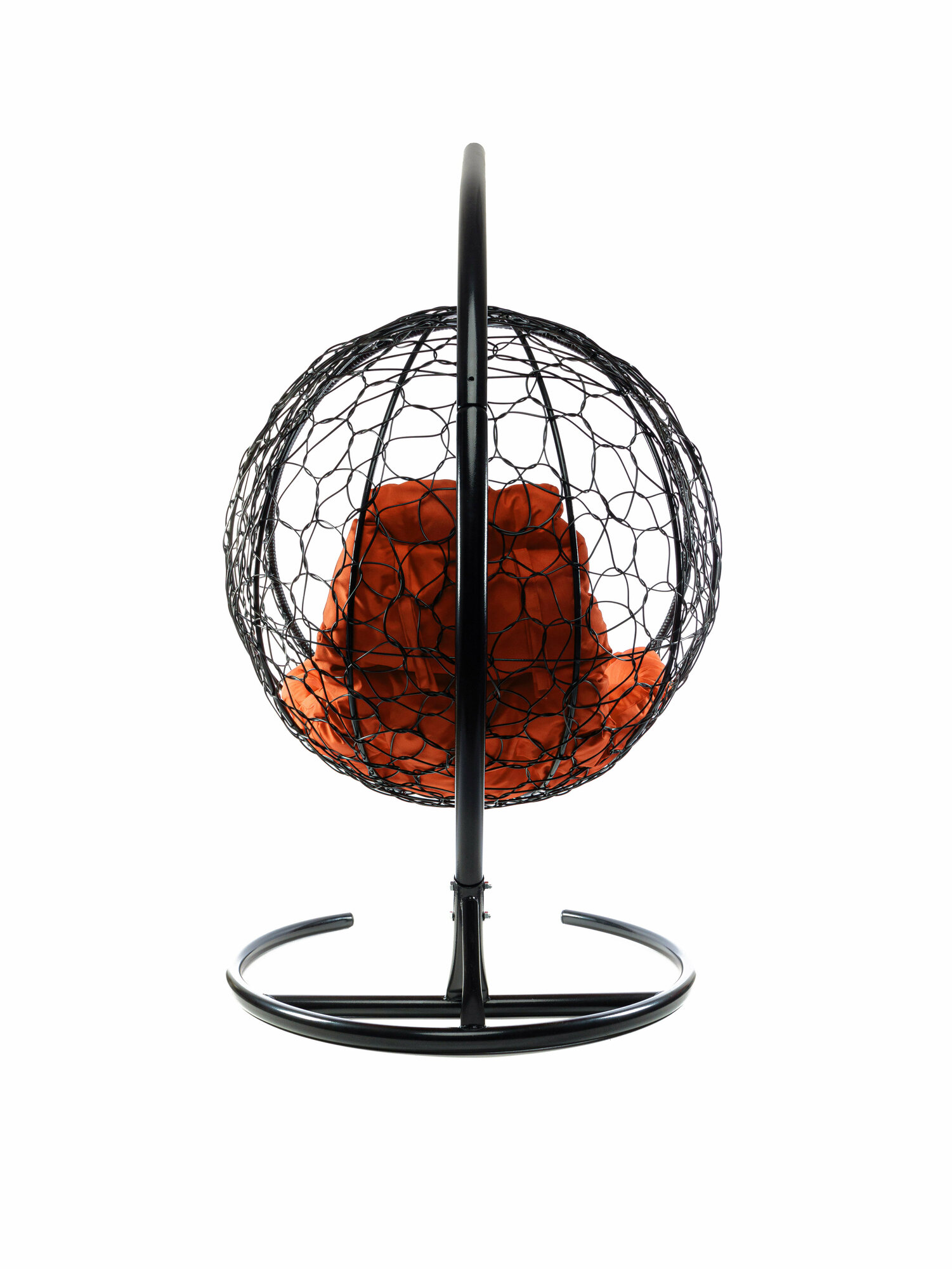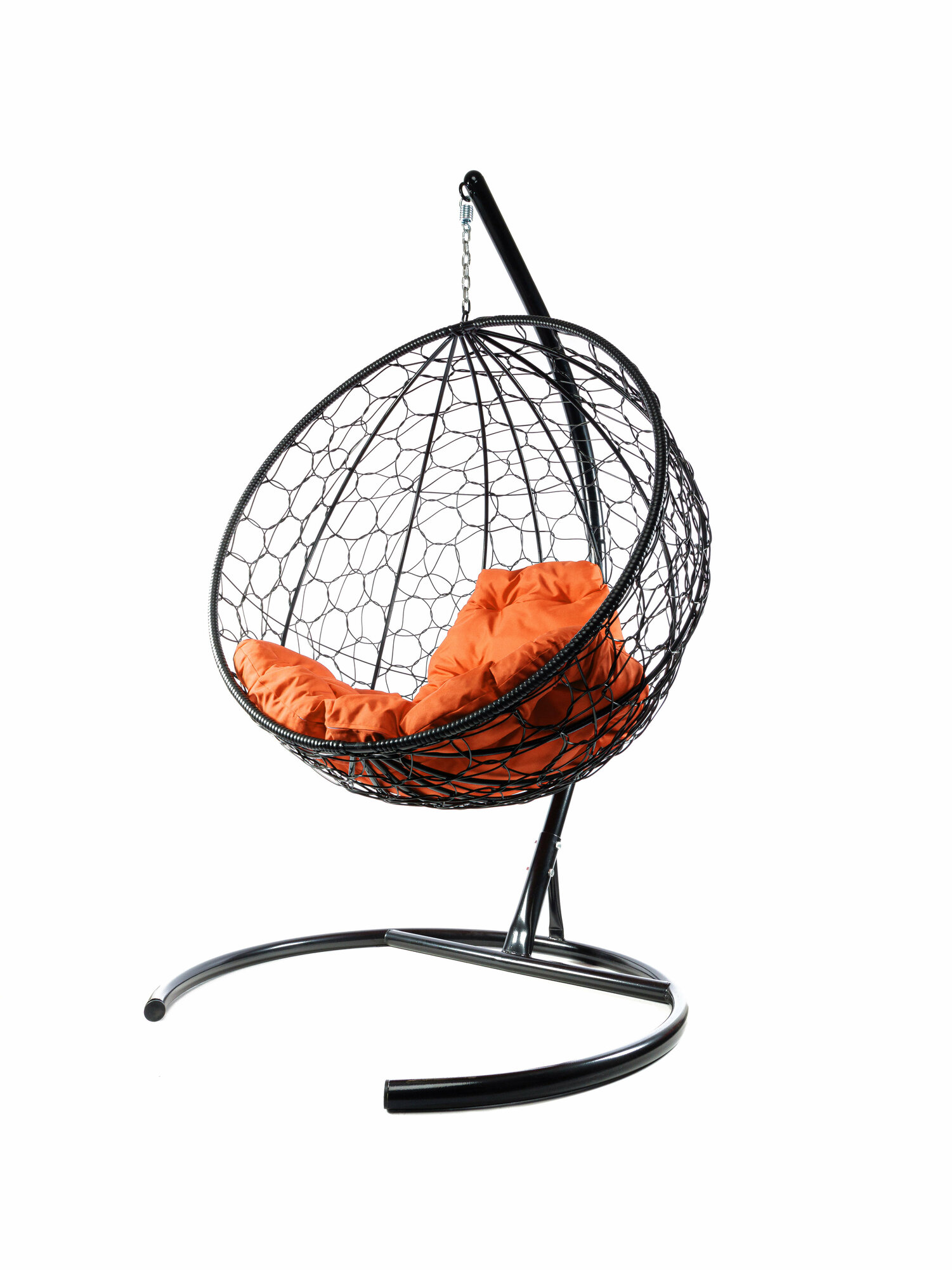 Подвесное кресло m-group круглый ротанг чёрное, оранжевая подушка