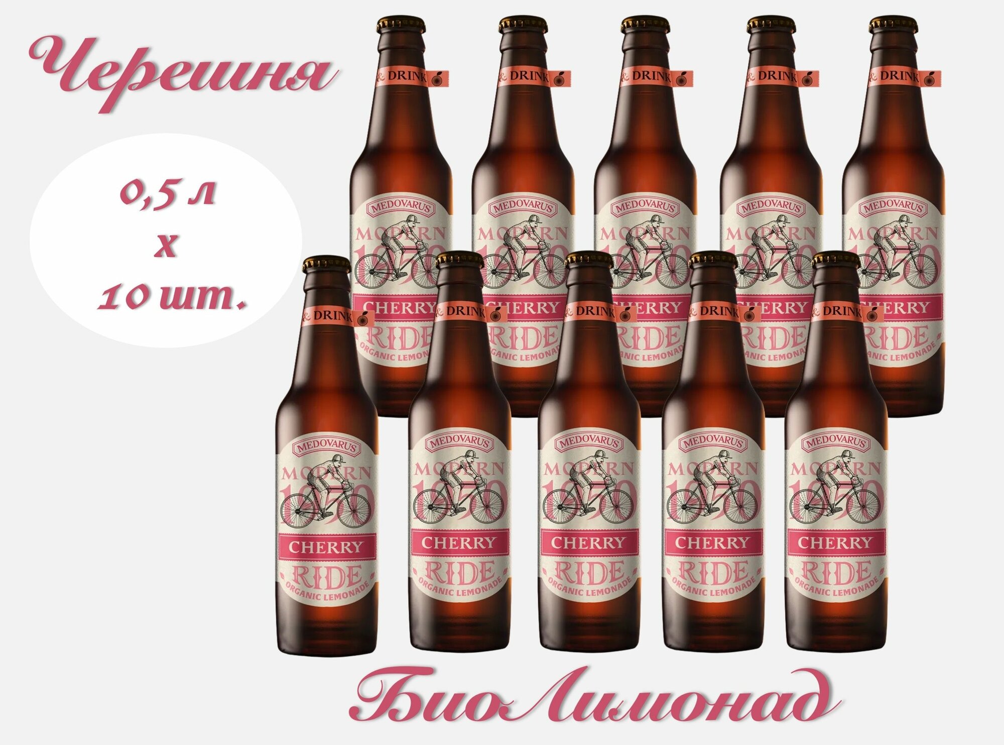 Лимонад Медоварус RIDE "Черешня" (Cherry), 10 бутылок в упаковке, 0.5 стекло