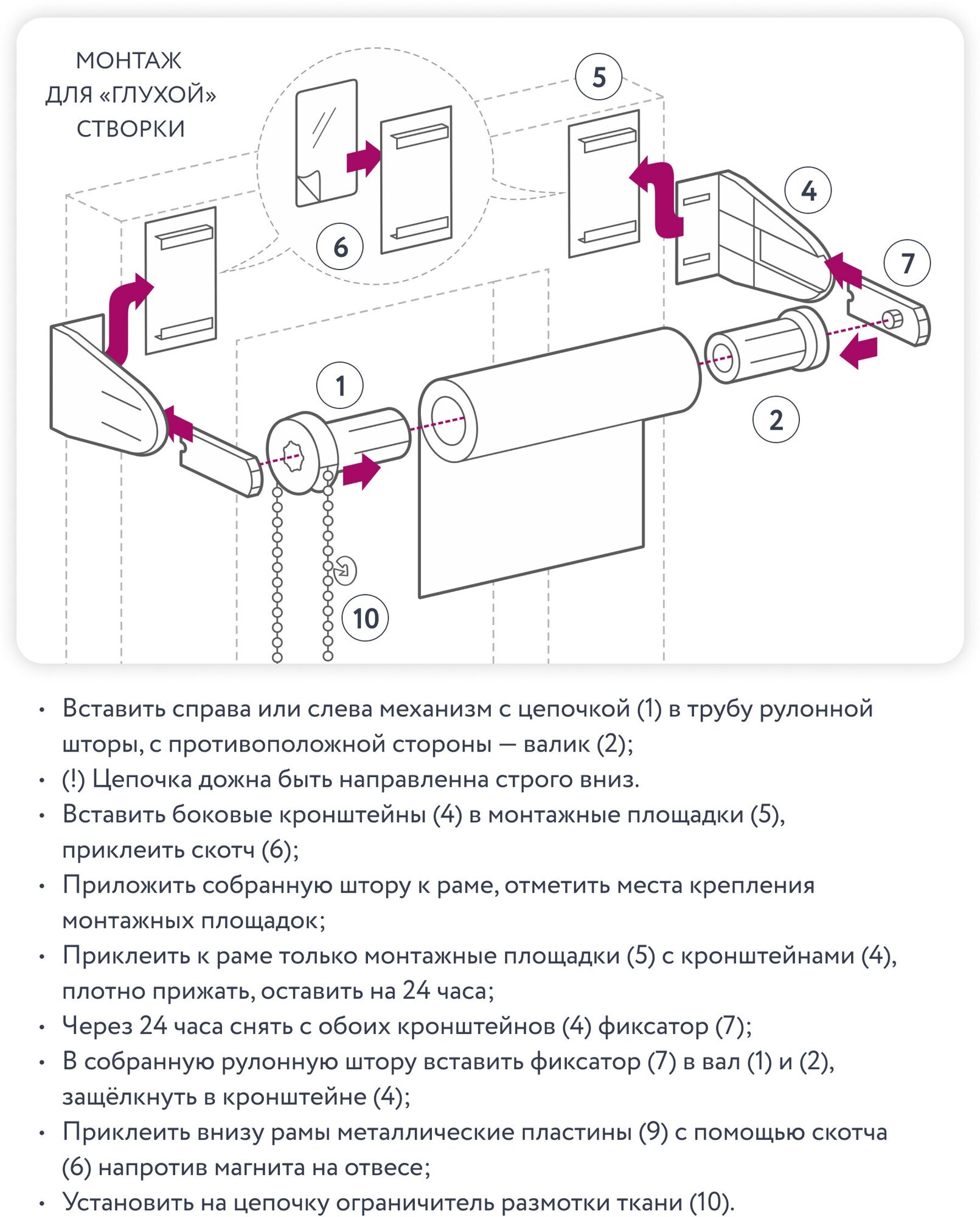 | Комплектация | рулонная штора - 1 штука, инструкция по сборке, комплект крепления |
