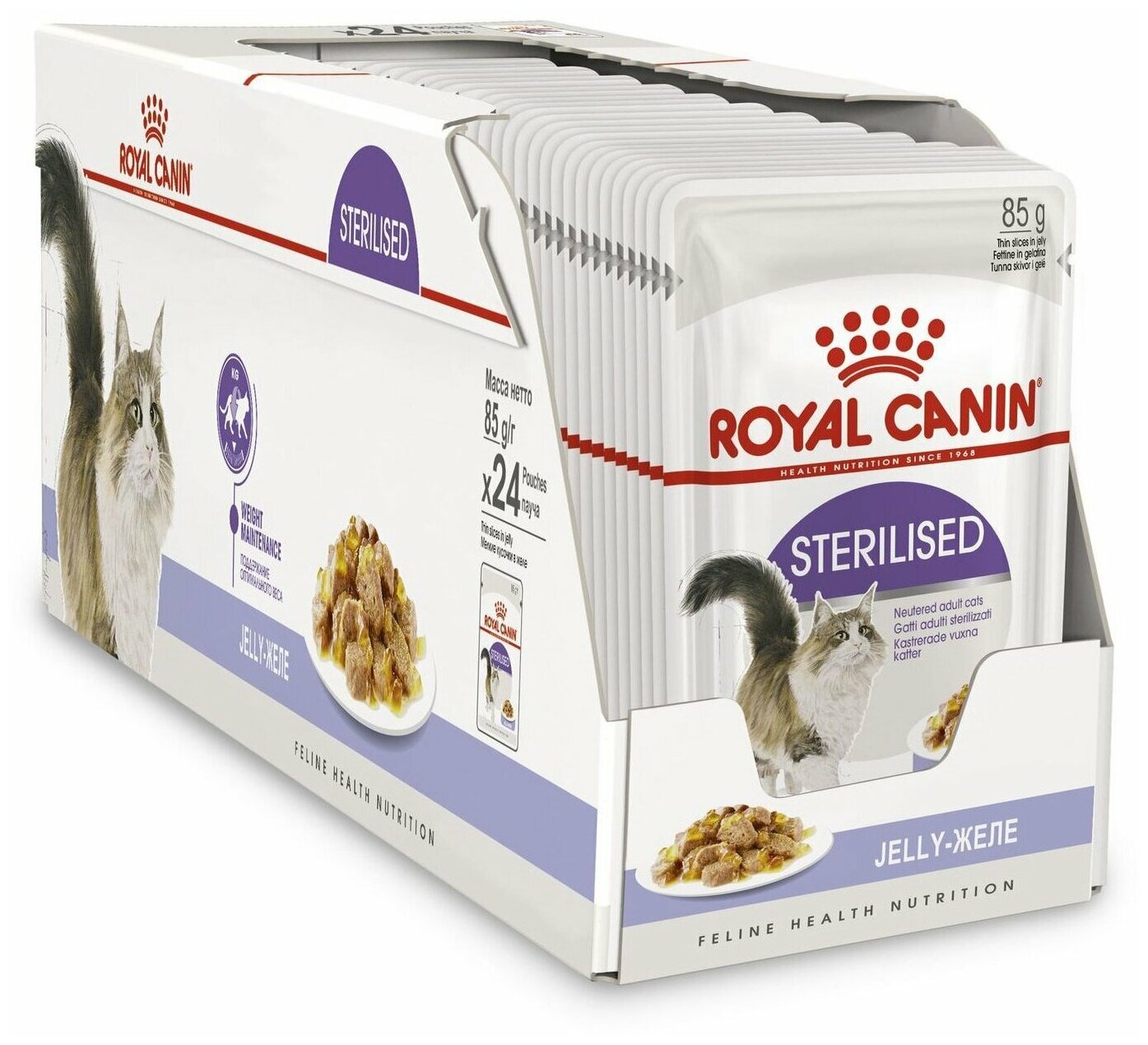 Влажный корм желе для кошек Royal Canin Sterilised (Стерилайзд) для стерилизованных кошек в возрасте от 1 до 7 лет, 24x0.085кг