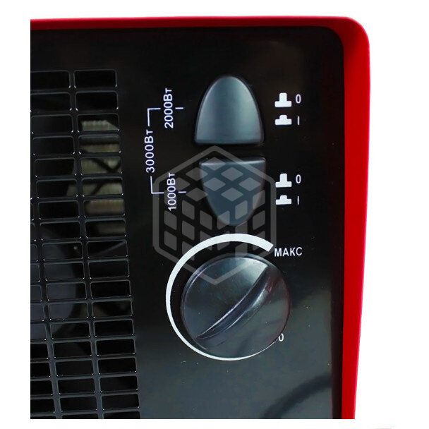 4 режима работы: 1) холодный обдув(но он чтото слабоват) 2) 1кВТ 3) 2кВт 4) 3кВт |