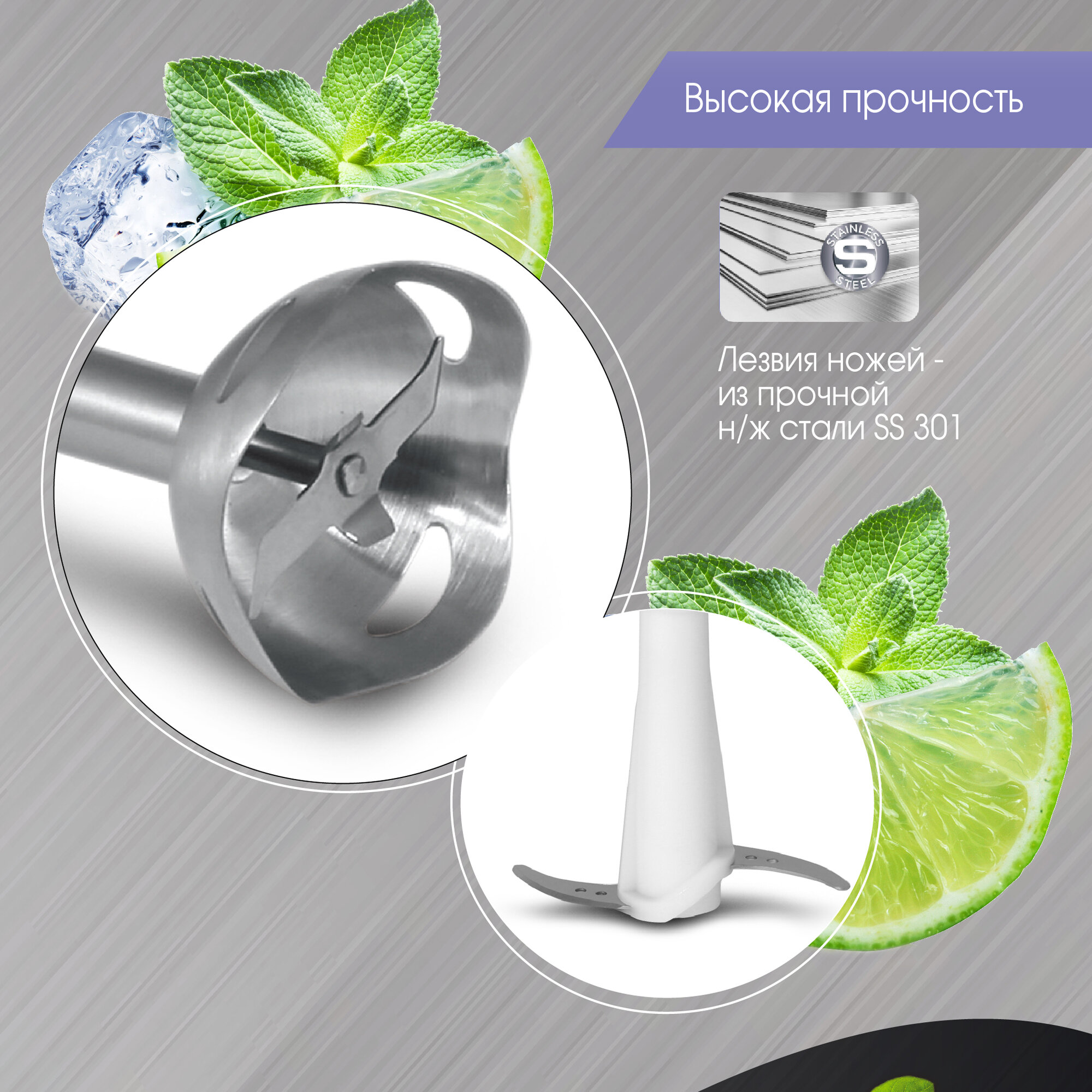 | Насадки | венчик для взбивания / для приготовления пюре / измельчитель |