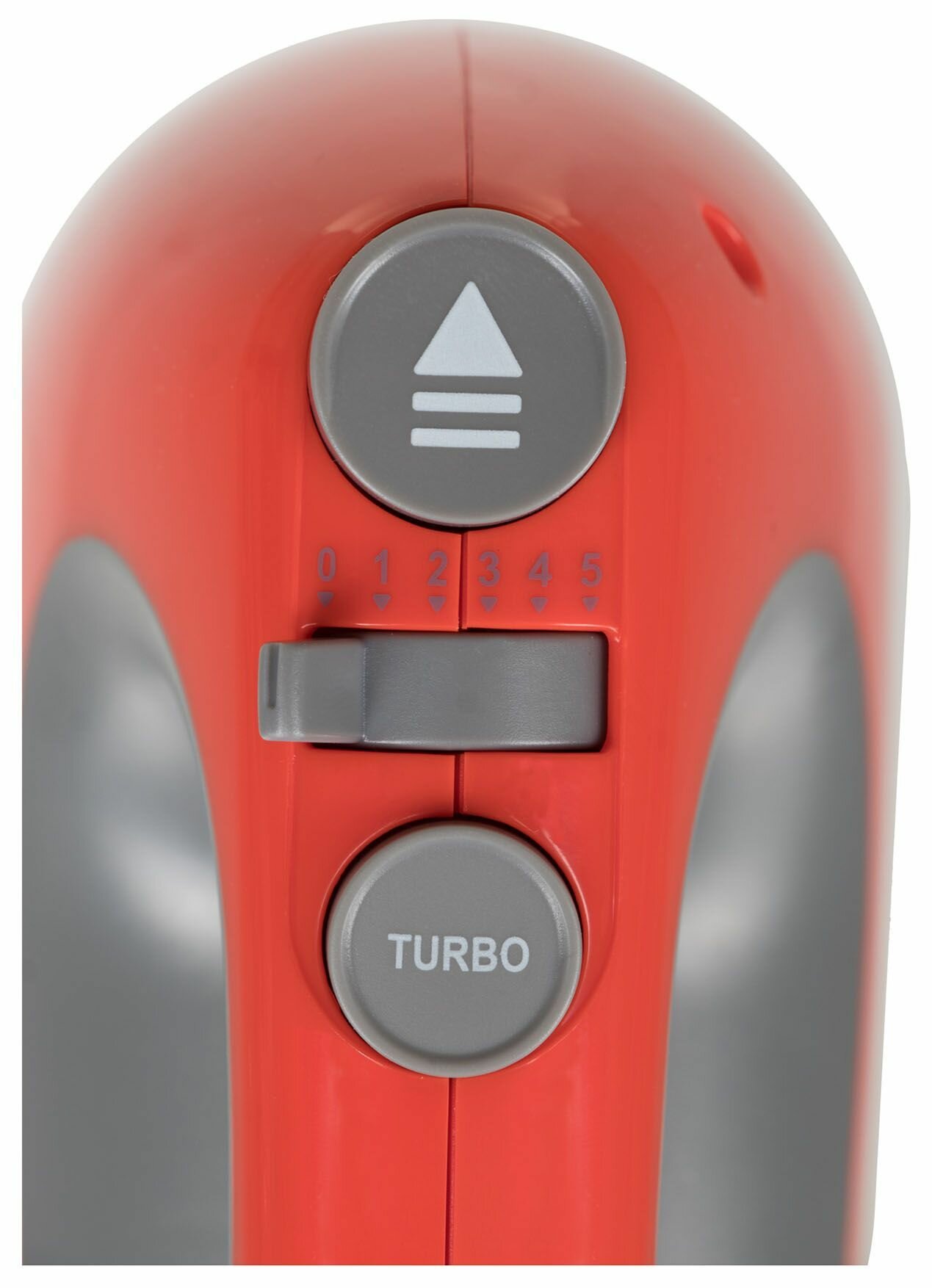 Миксер ручной Hyundai красный/серый, Мощность 500 Вт, 5 скоростей, TURBO-режим, 2 года гарантии