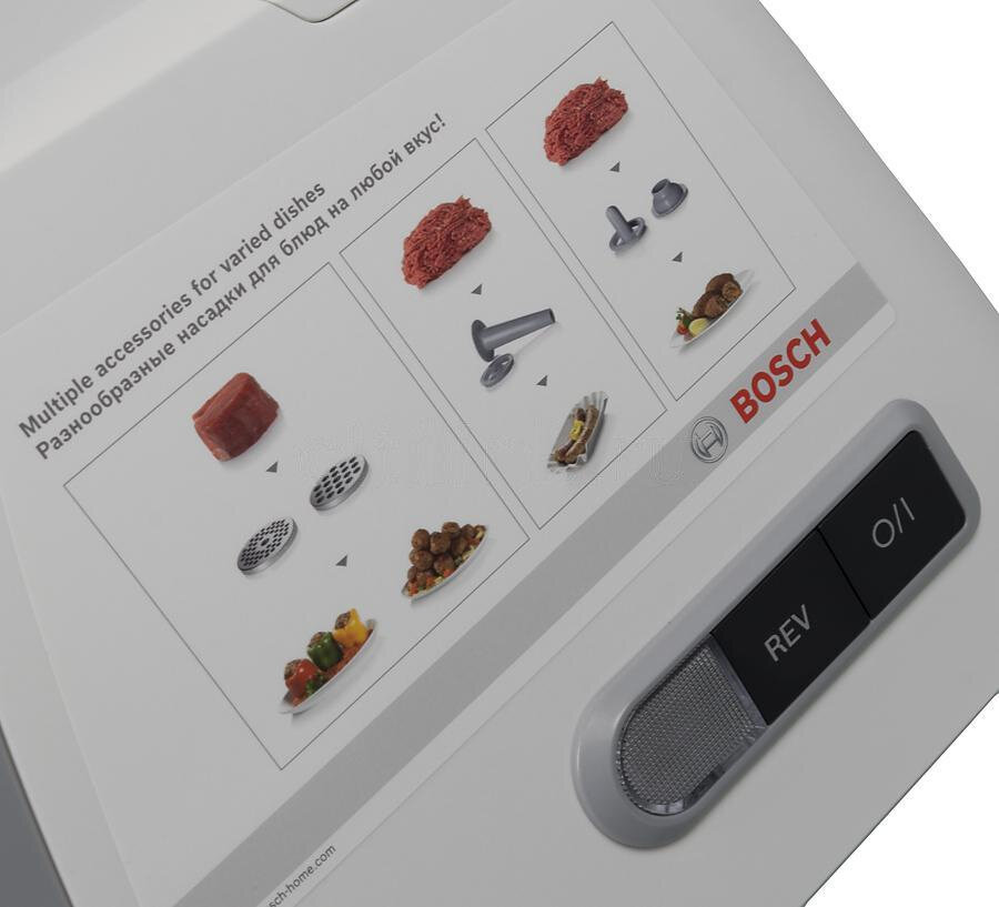 Мясорубка Bosch MFW45020, 1600 Вт, 2.7 кг/мин, реверс, 4 насадки, бело-серая интересное: