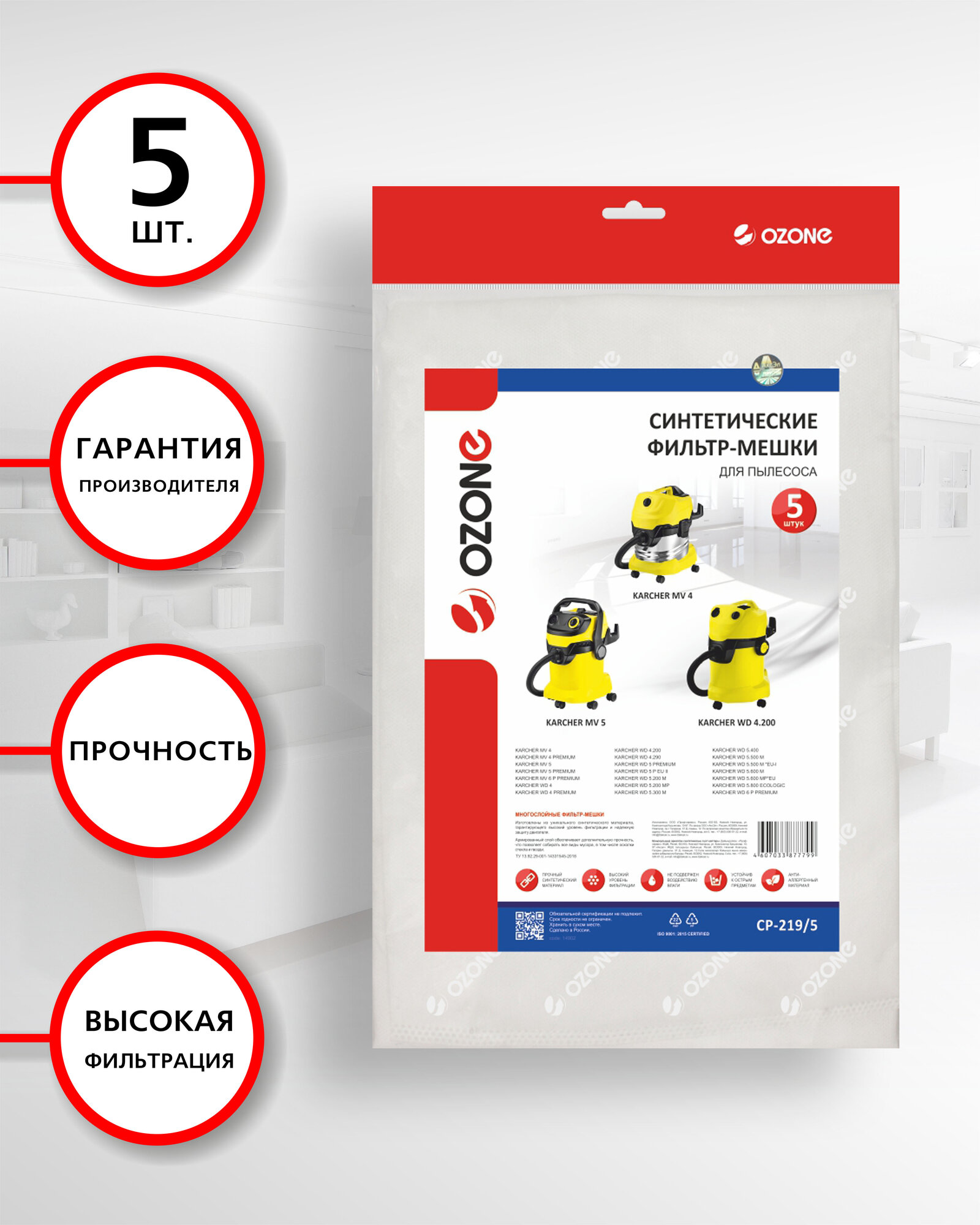 Фильтр-мешки Ozone CP-219/5 5шт для Karcher MV 4/MV 5/MV 6/WD 4/WD 5/WD 6