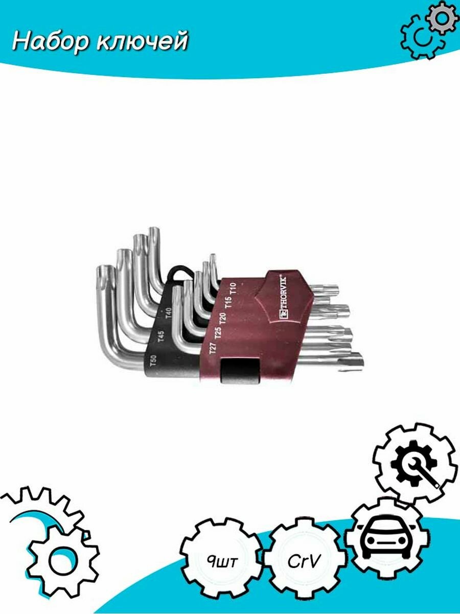Набор ключей THORVIK TORX коротких Т10-T50, 9 предметов