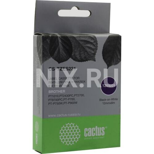 Картридж Cactus CS-TZES231, TZe-S231, черный / 12мм, черный шрифт, белый фон, 8м ( CS-TZES231