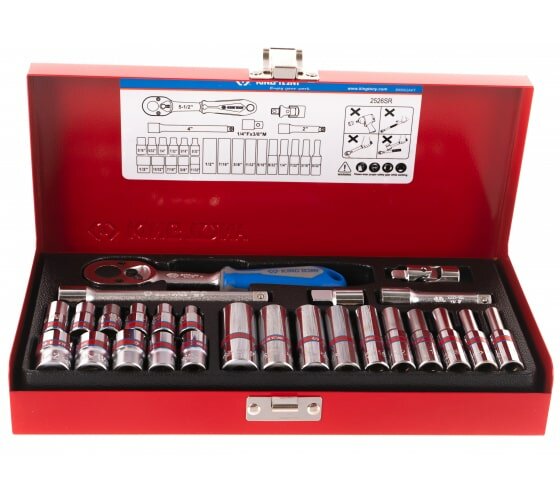 Набор торцевых головок с принадлежностями 1/4, шестигранные, 4-12 мм, 26 предметов KING TONY 2526MR
