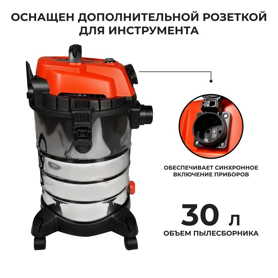 Пылесос строительный BRAIT BVC-30 (220В,50Гц,1400Вт, подключ.инструмент 2000Вт,пылесборник 30л., шланг 3м)