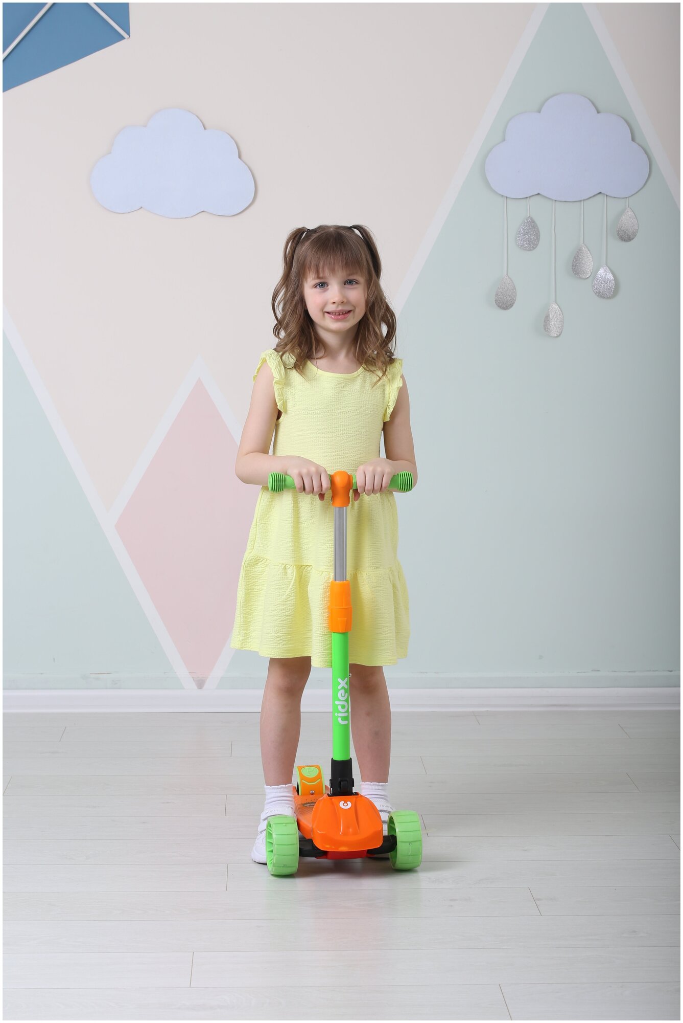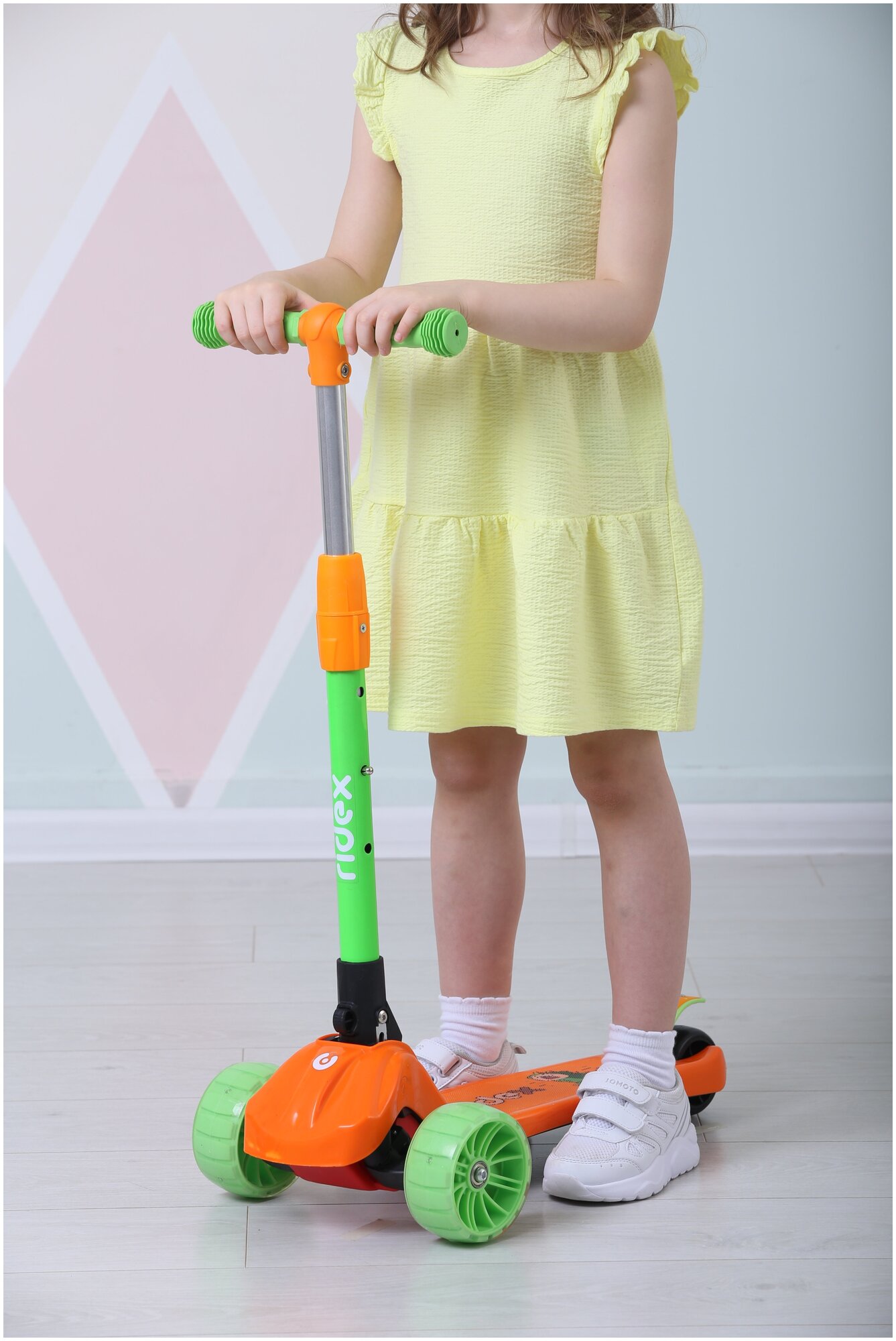 Самокат Ridex 3-х колесный Juicy, 120/80 мм, оранжевый/зеленый (4680459153951)