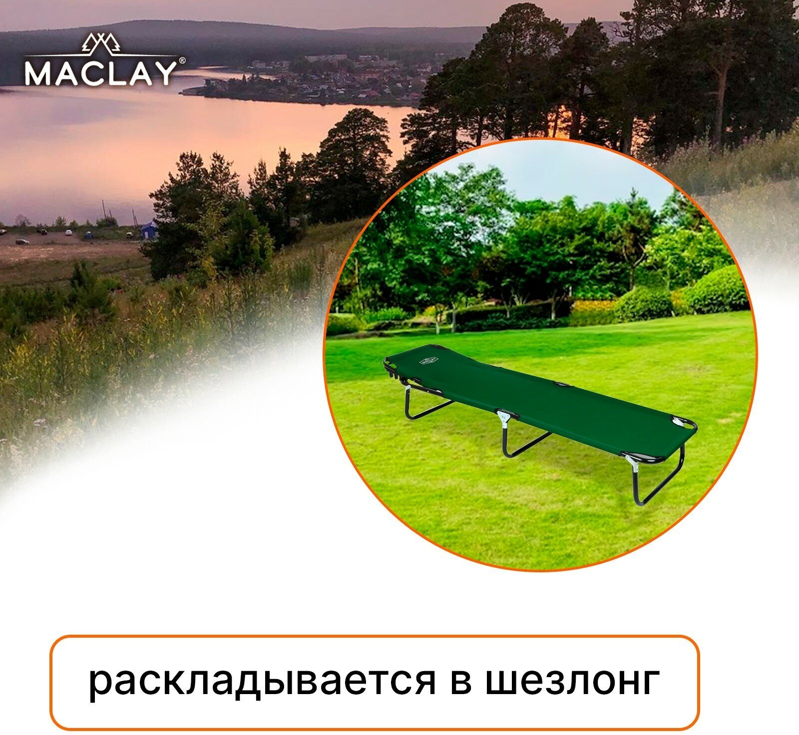 Раскладушка туристическая, с регулируемой спинкой, 191 х 55 х 28 см, до 100 кг, цвет зелёный Maclay .