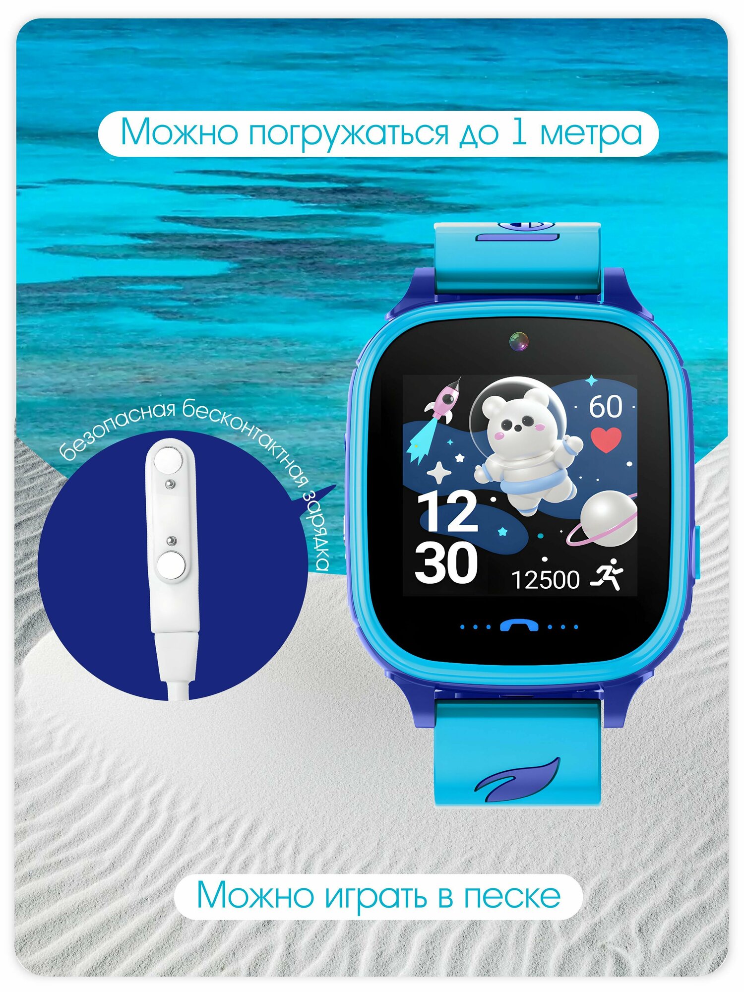 Детские смарт-часы Leef Nimbus, 2G, GPS, геозоны, SOS, камера, IP67, 400 мАч, синие