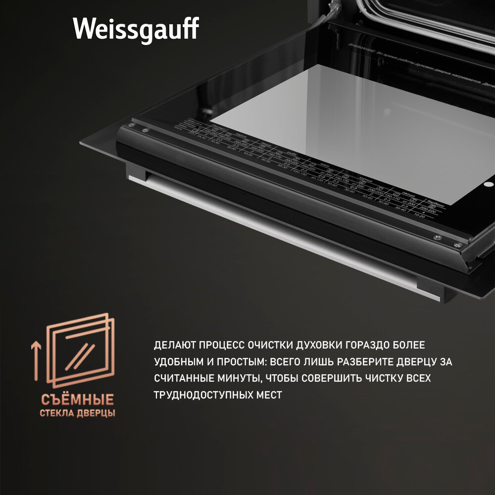 Электрический духовой шкаф Weissgauff EOV 29 PDB с конвекцией и грилем, 3 года гарантии, Гидролизная очистка, Эмаль SMART CLEAN, Класс энергопотребления А
