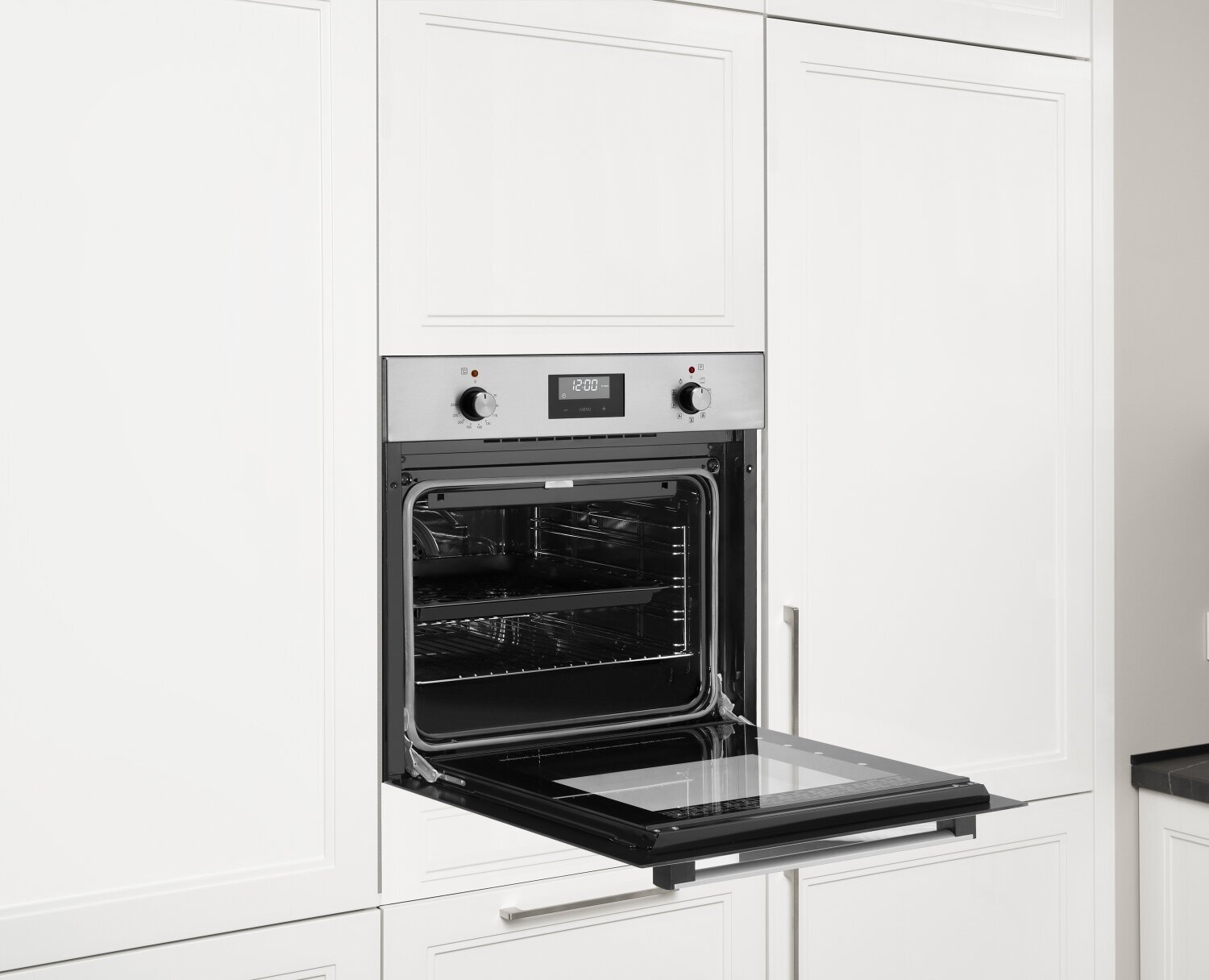 Электрический духовой шкаф Weissgauff EOV 29 PDX с конвекцией и грилем, 3 года гарантии, утапливаемые рукоятки PIPO, гидролизная очистка, класс энергопотребления А
