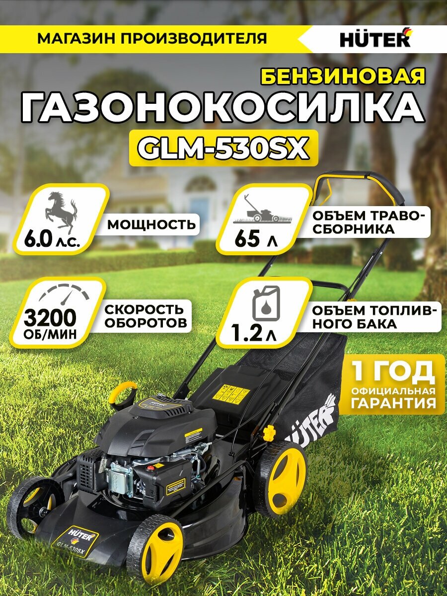 Купить Бензиновая газонокосилка Huter GLM-530SX, 6 л.с., 2800-3200 об/мин