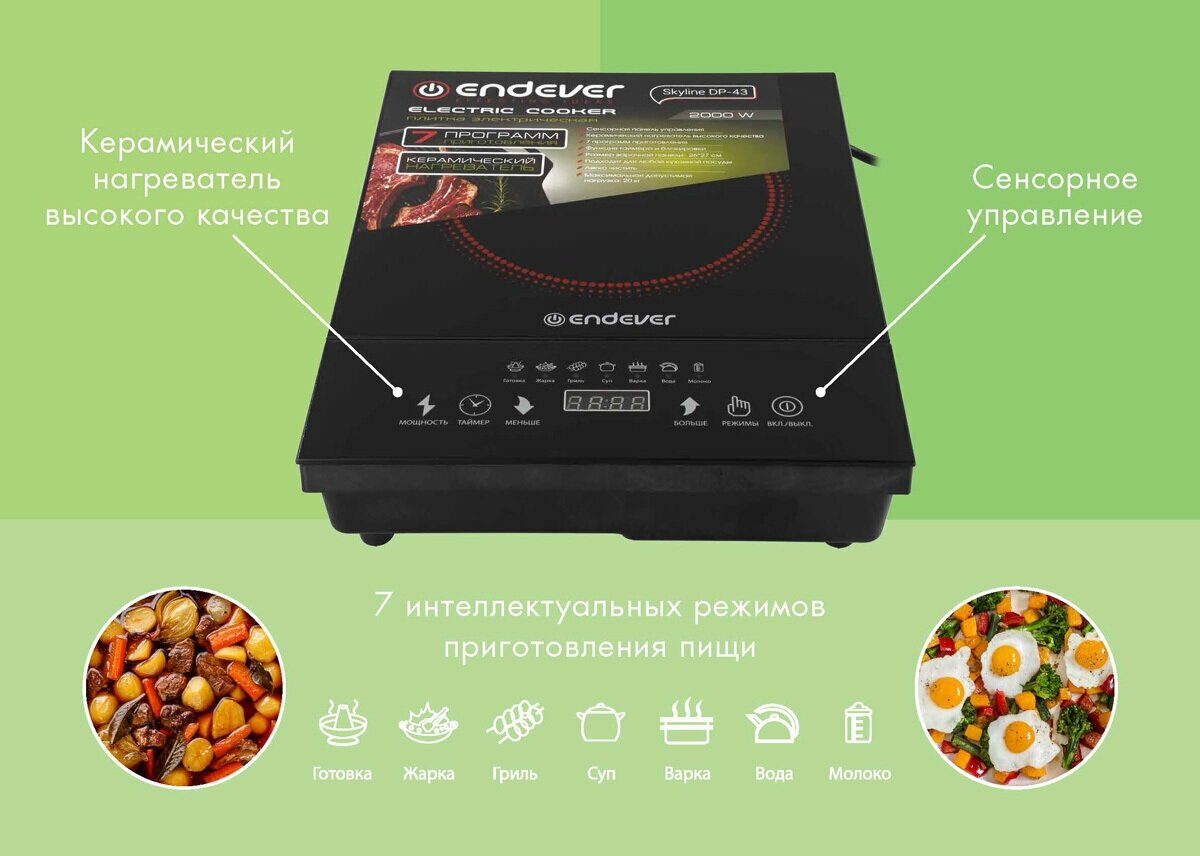 Купить Плитка электрическая настольная Endever Skyline DP-43 / 2000 Вт / до 20 кг / до 600 градусов / 7 программ приготовления