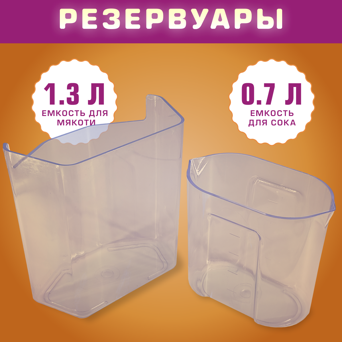 крепятся к соковыжималке..поэтому если агрегат завибрировал (много жмыха) то емкости начинают ,,гулять,, мыть надо сразу чтобы пластмасса не окрашивалась... |
