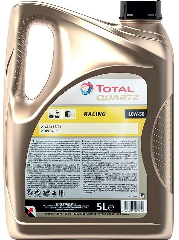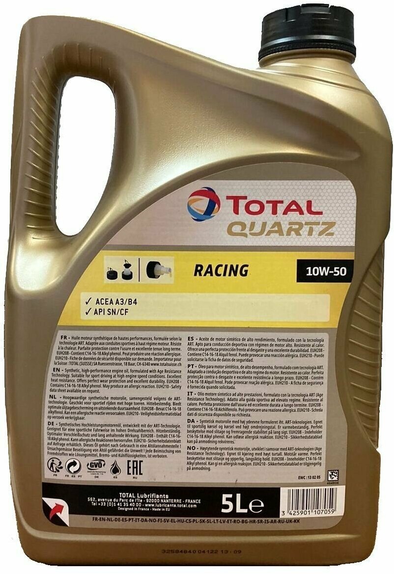 TOTAL 213699 Масло моторное синтетическое 5л - QUARTZ RACING 10W-50, ACEA A3/B4, API SN/CF