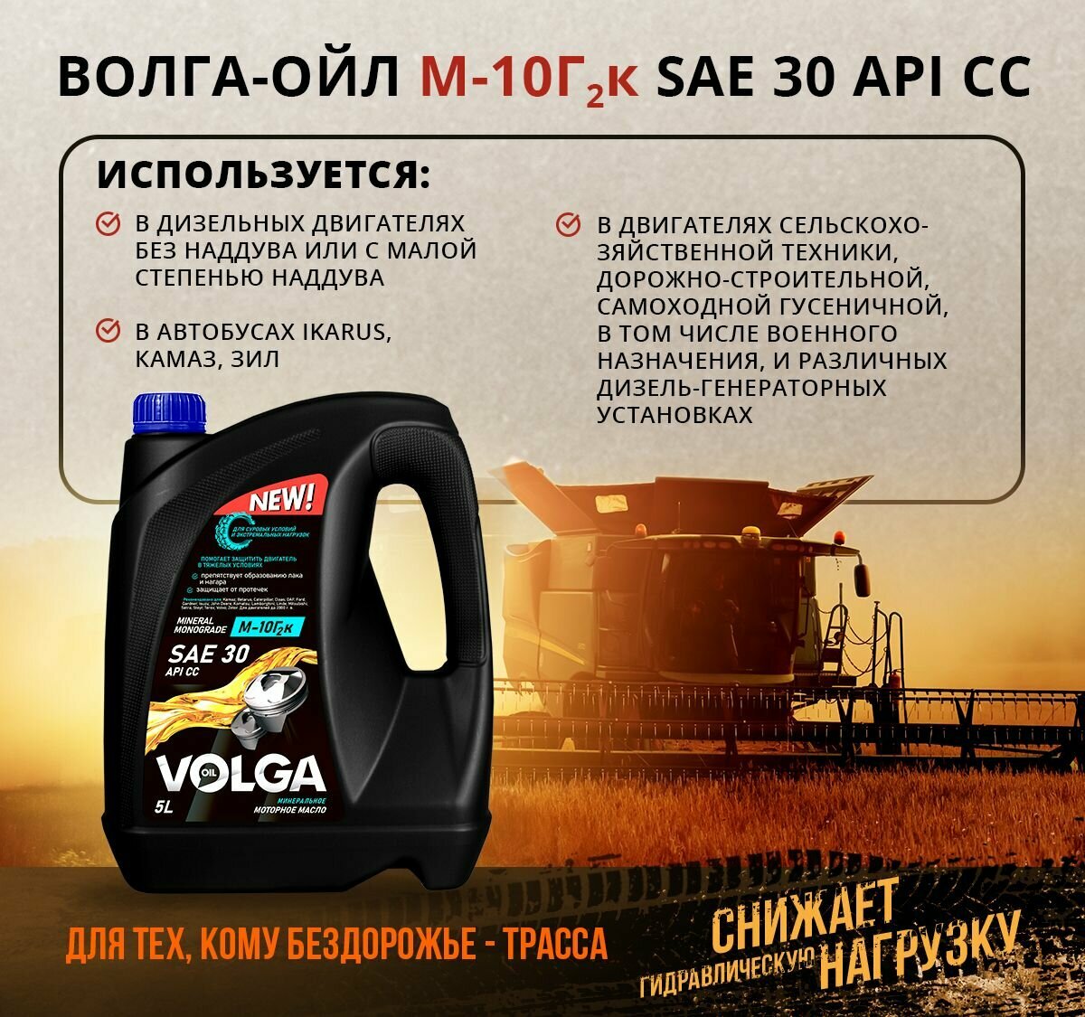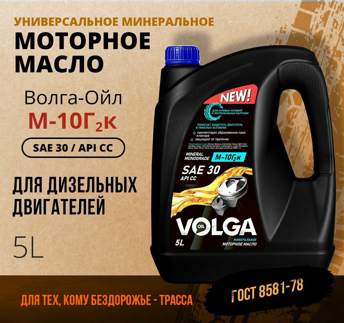 VOLGA-OIL 800810 Масло моторное минеральное М-10Г2К SAE 30 CC 5л