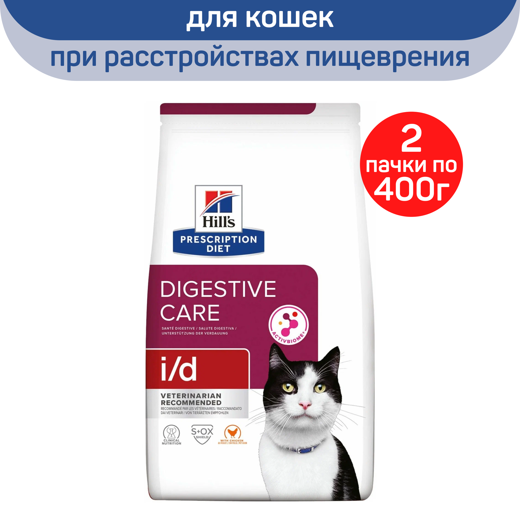 Купить Сухой диетический корм для кошек Hill's Prescription Diet i/d Digestive Care, при расстройствах пищеварения, жкт, с курицей, 400 г х 2 шт.