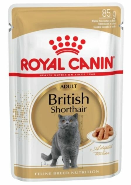 Royal Canin корм в соусе для кошек старше 12 мес, британской короткошерстной породы British Shorthair Adult, 85 г, 12 шт