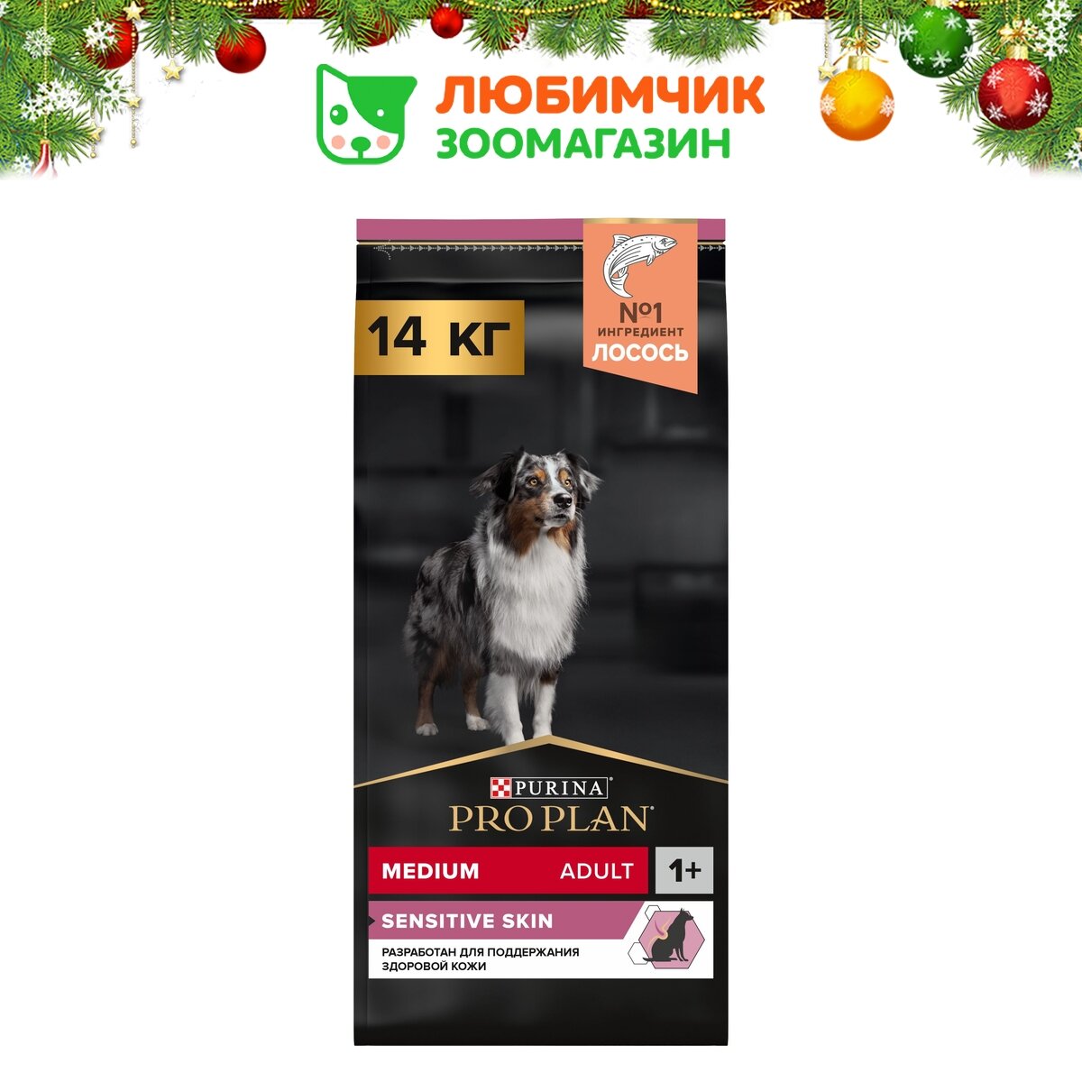 Сухой корм Pro Plan для собак средних пород с чувствительной кожей, с высоким содержанием лосося, Пакет, 14 кг