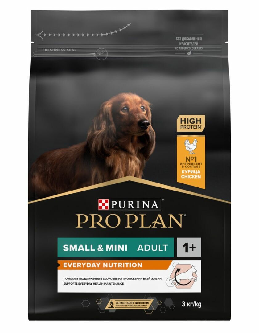 Сухой корм PRO PLAN® для взрослых собак мелких и карликовых пород, с высоким содержанием курицы, EVERYDAY NUTRITION,3 кг