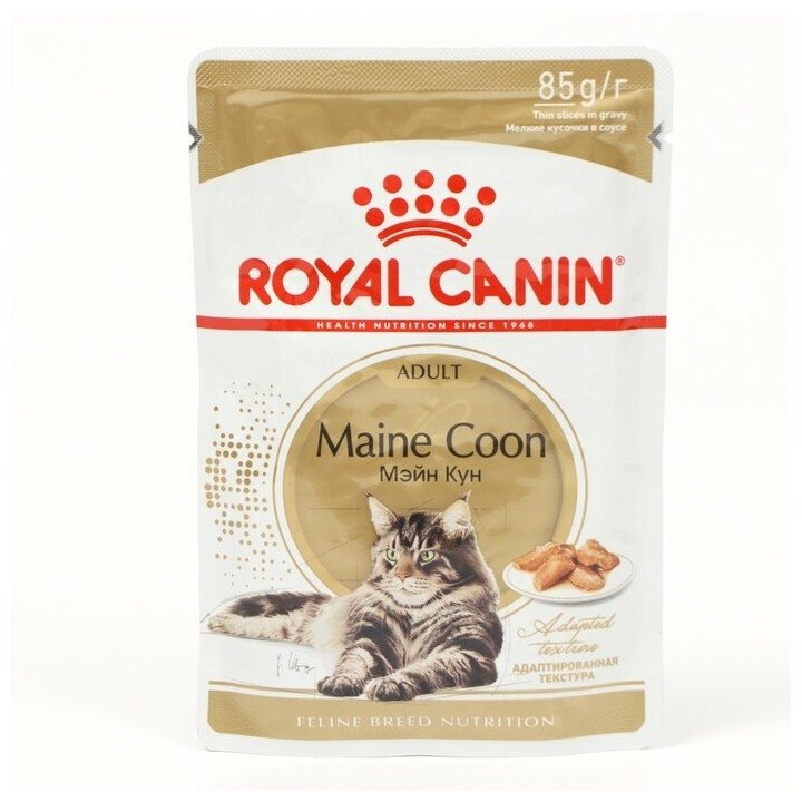 Купить Royal Canin Maine Coon Adult Корм консервированный для взрослых кошек породы Мэйн Кун, соус, 24шт. х 0,085кг
