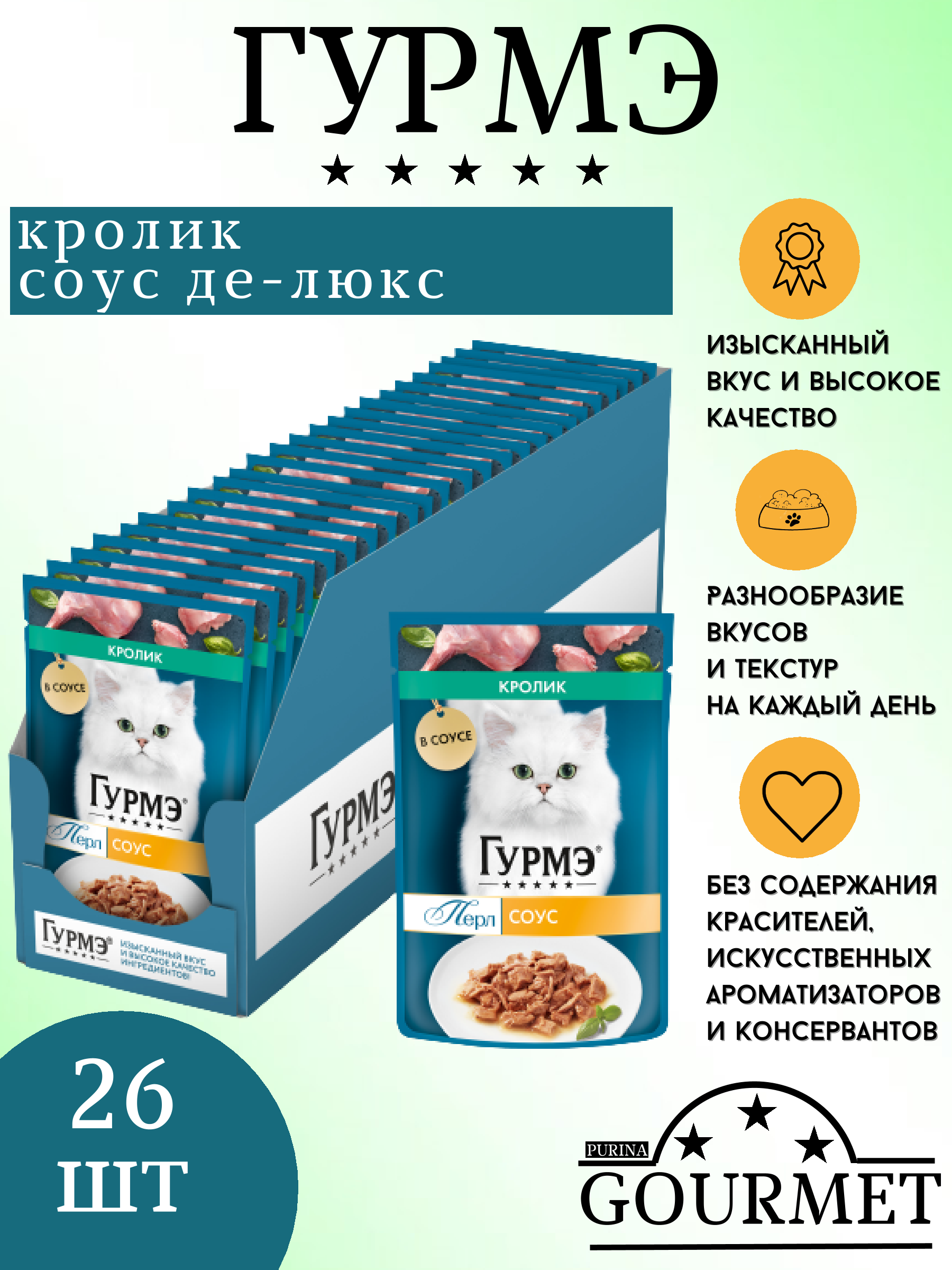 Купить Влажный корм для кошек Гурмэ Перл, с кроликом 26 шт. х 75 г (кусочки в соусе)