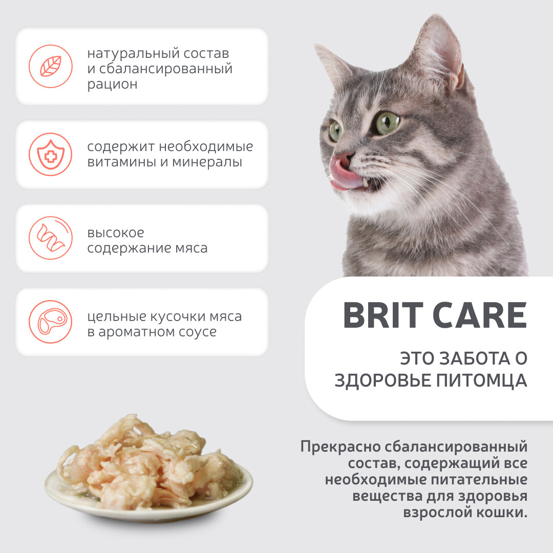 Корм для кошек влажный Brit / Брит Care для взрослых кошек из мяса куриной грудки 80г / консервы для животных