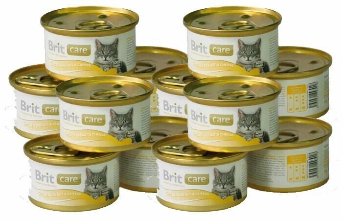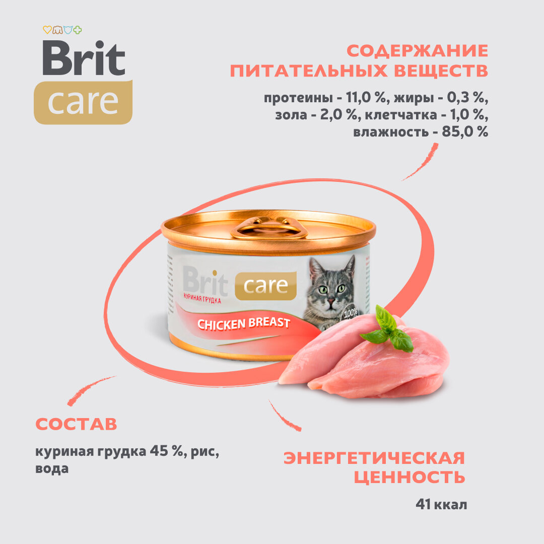 Корм консервированный Brit Care Chicken Breast для взрослых кошек, куриная грудка, 12шт.*80г