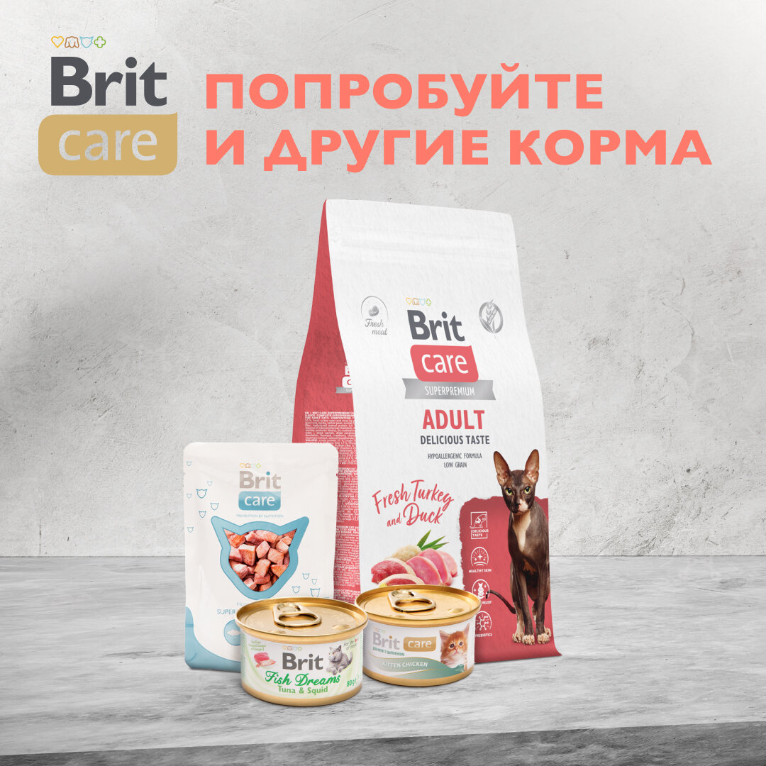 | Плюсы: | Нашему котику из всех Brit Care этот корм (куриная грудка) нравится больше всего. Внутри мясные волокна, пропитанные наваристым бульоном. Мы даже слегка разбавляем его теплой кипяченой водой. Такой "суп" кот очень любит. |