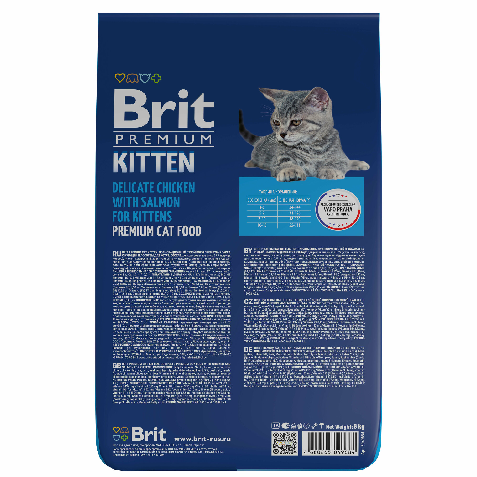 Сухой корм для котят Brit Premium, с курицей в лососевом соусе 8 кг