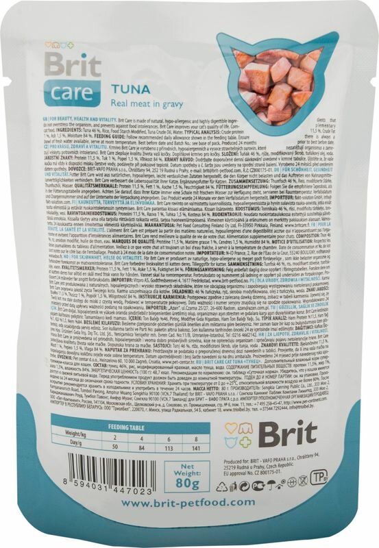 Brit Care пауч для кошек (кусочки в соусе) Тунец, 80 г. упаковка 24 шт