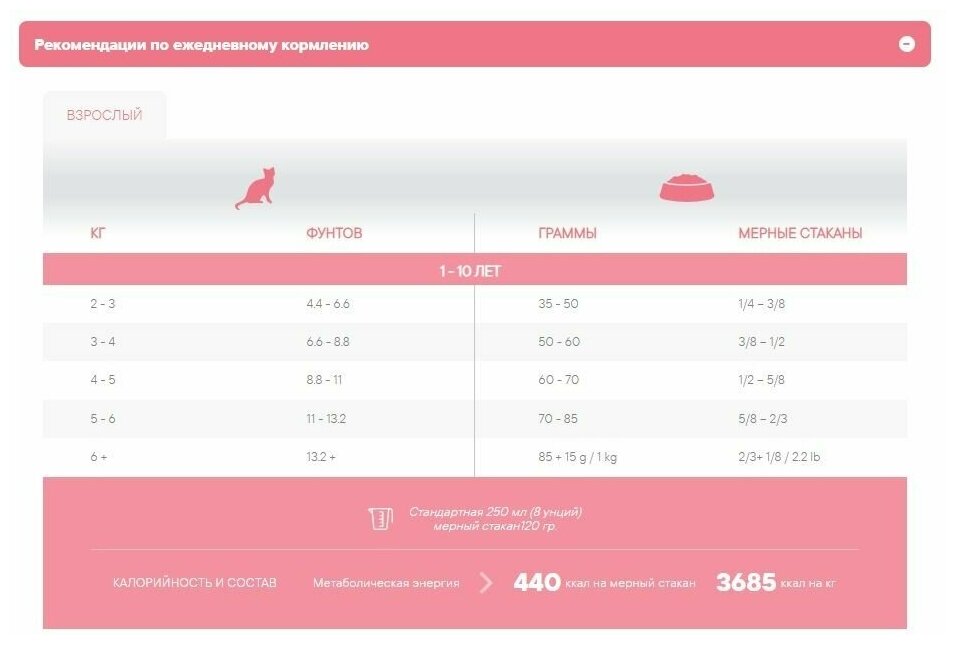 | Особые потребности | профилактика МКБ / профилактика избыточного веса / для живущих в помещении |