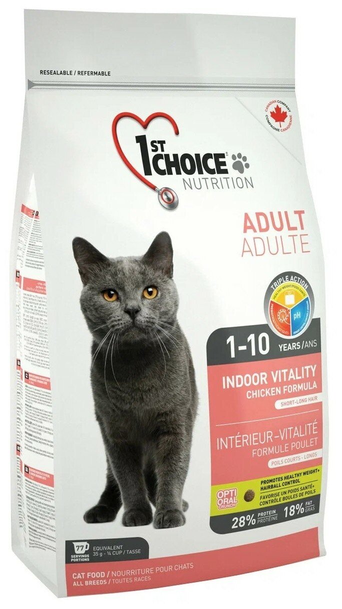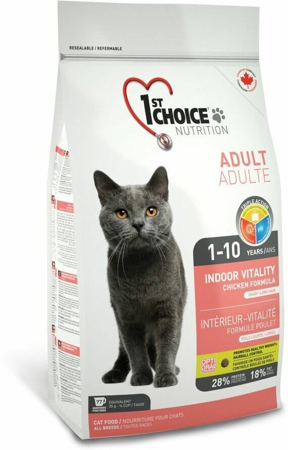 1ST CHOICE CAT ADULT INDOOR VITALITY для взрослых кошек живущих дома с курицей (5,44 кг)