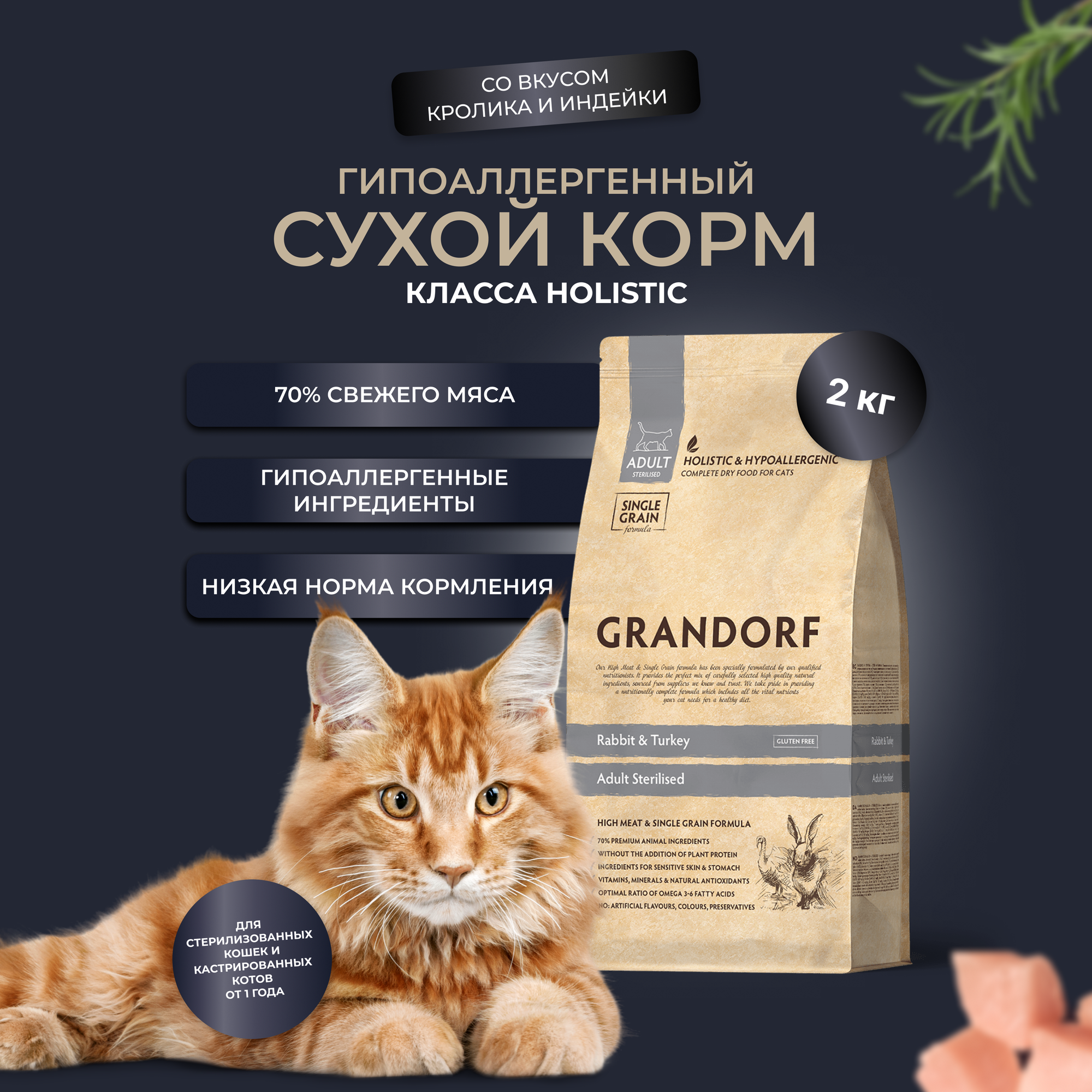 Купить Корм для кошек GRANDORF для стерилизованных и кастрированных, кролик с индейкой сух. 2кг