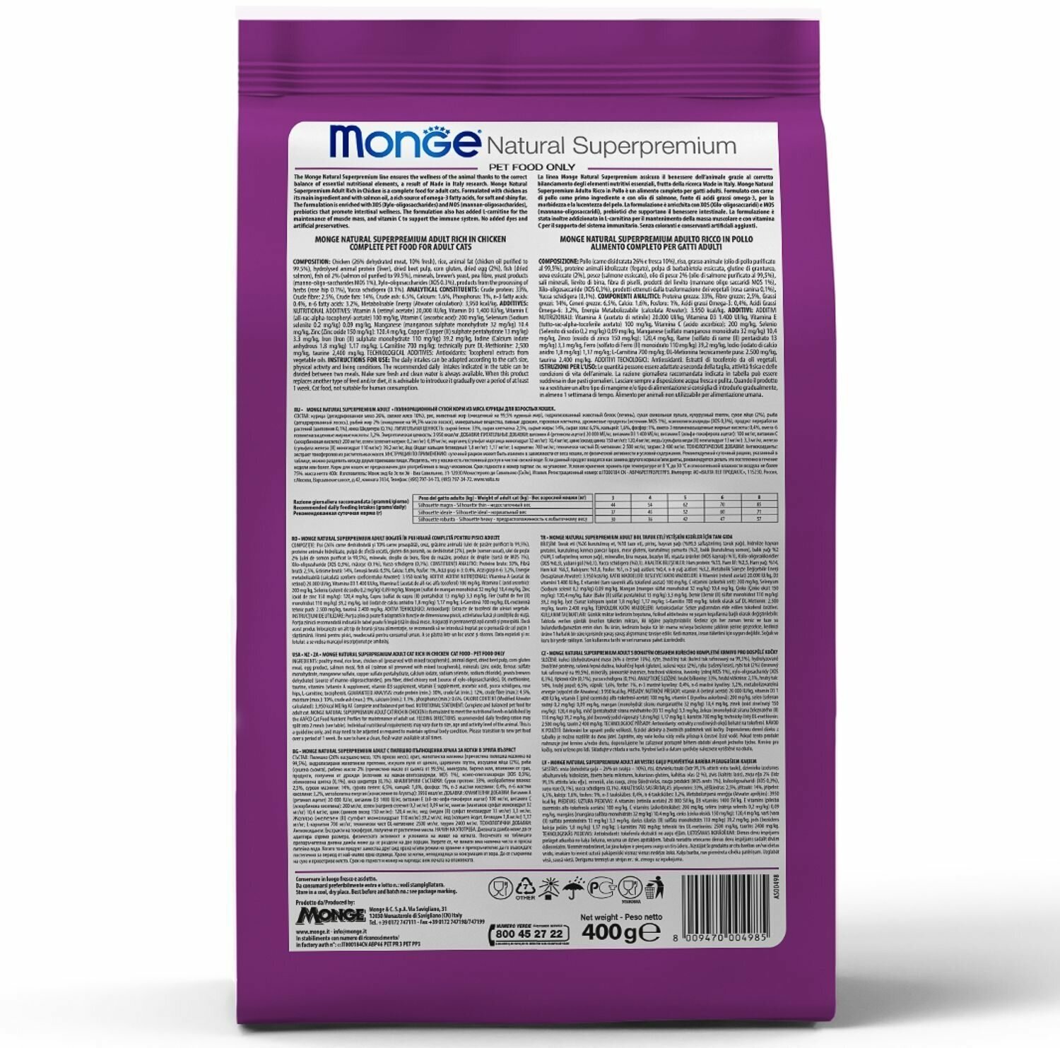 Сухой корм для взрослых кошек и котов Monge Natural Superpremium, с курицей 400 г