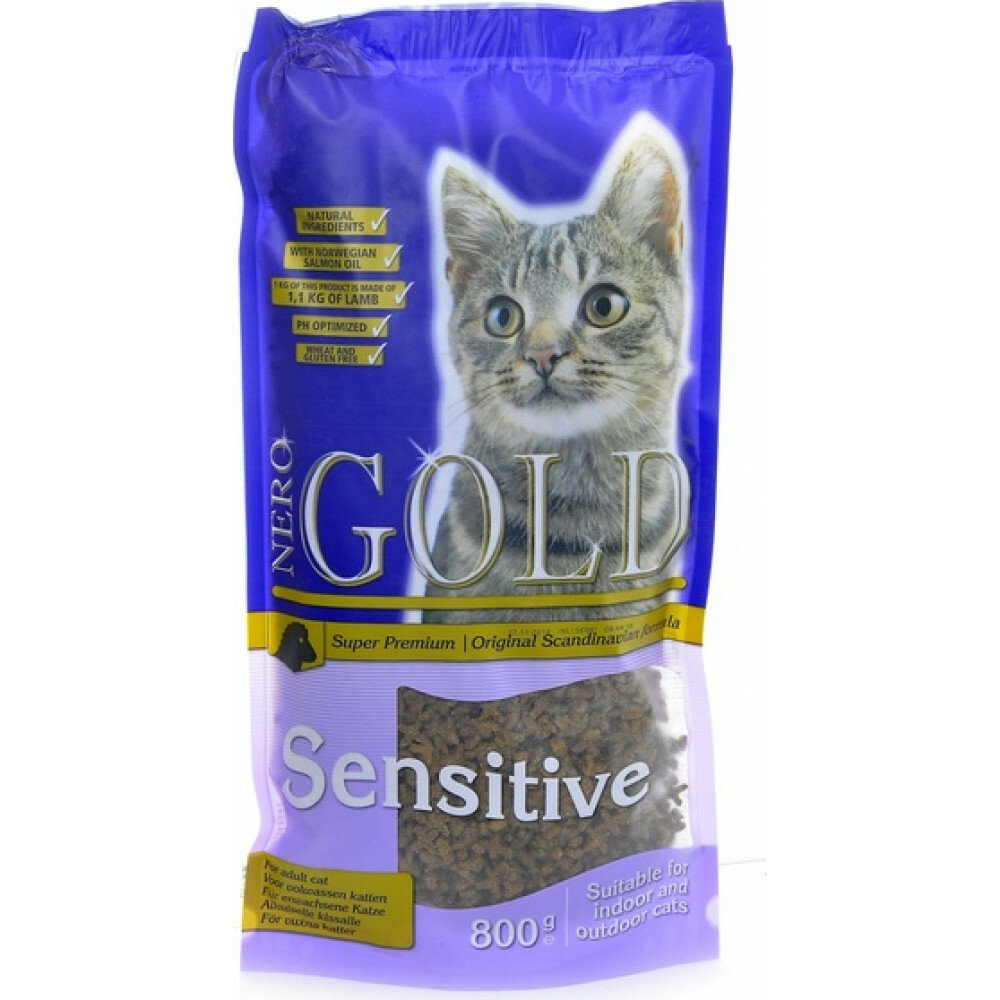 NERO GOLD super premium Для Кошек с чувствительным пищеварением: Ягненок (Cat Adult Sensitive), 0,8 кг