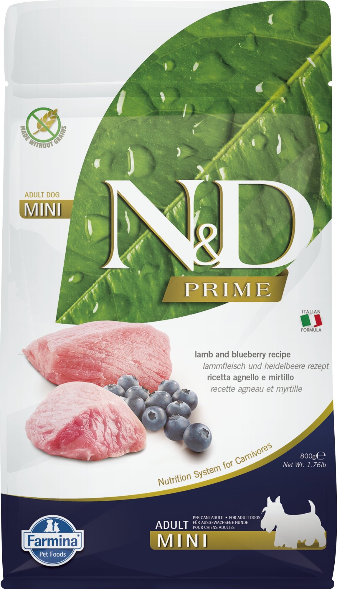 Сухой беззерновой корм Farmina N&D Prime Dog Mini для собак мелких пород, с ягненком и черникой, 800 г
