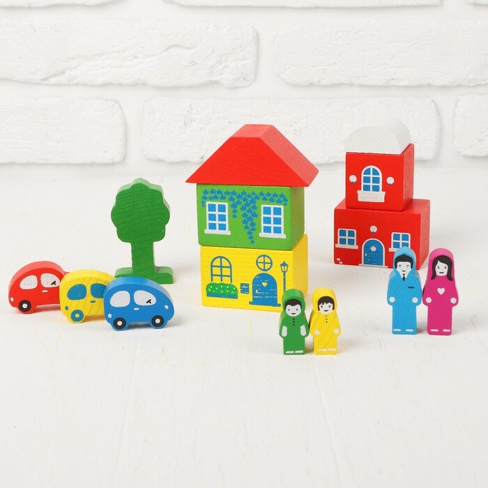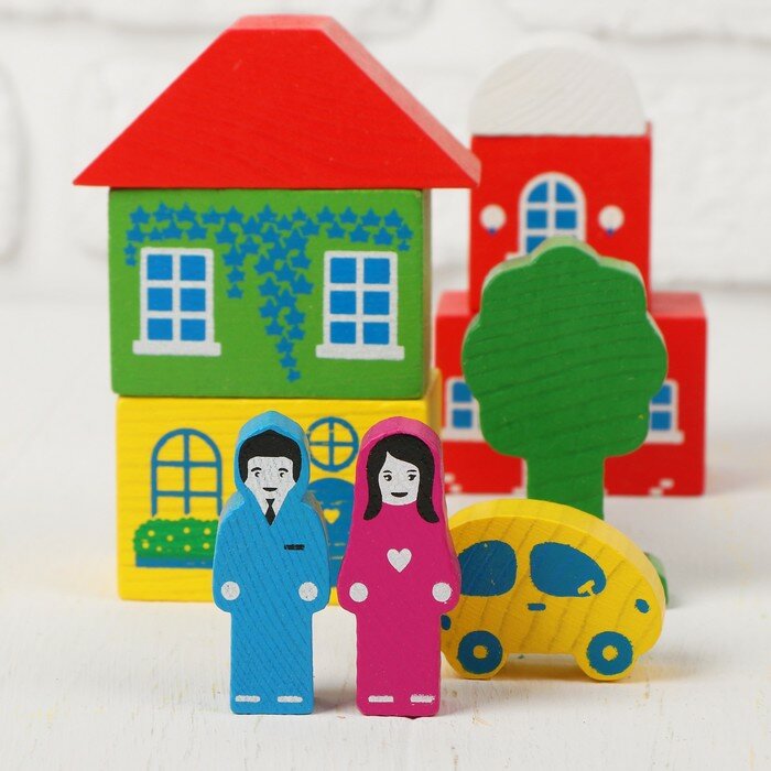 | Плюсы: | Понравилось что набор из дерева. Фигурки людей, машин, детали с изображением окон для строительства зданий. |