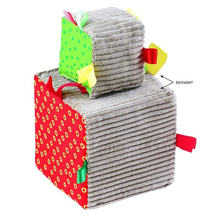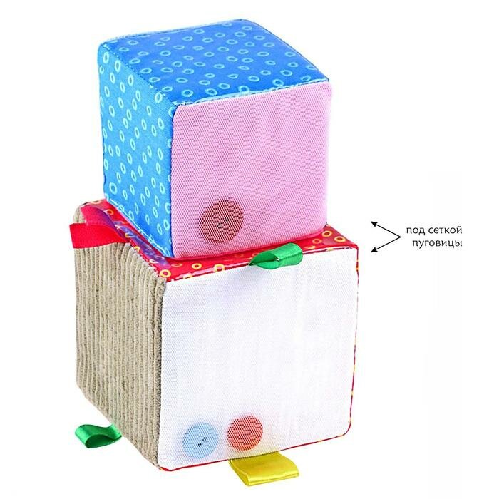 | Плюсы: | Безопасные.Приятные на ощупь.Разные материалы и свойства у кубиков.Ребёнку нравятся.Легко стираются в стиральной машине не деформируются и не теряют цвет. |