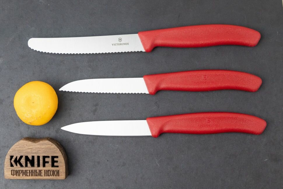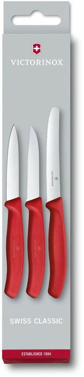 Набор из 3 ножей VICTORINOX Swiss Classic: 2 ножа для овощей 8 см, столовый нож 11 см, красная ручка
