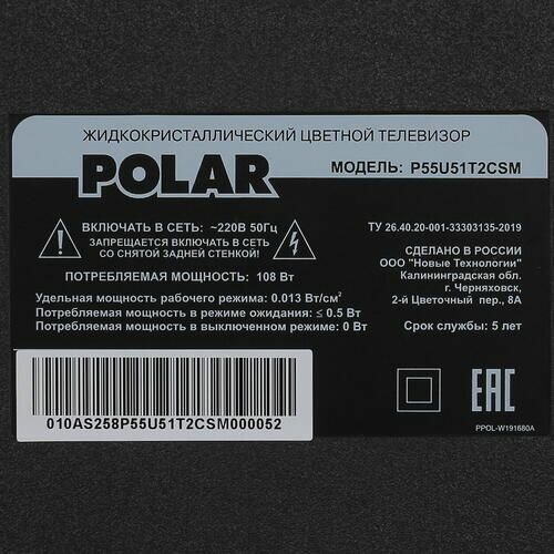 POLAR 55" Телевизор LED POLAR P55U51T2CSM Rev. 1 P55U51T2CSM