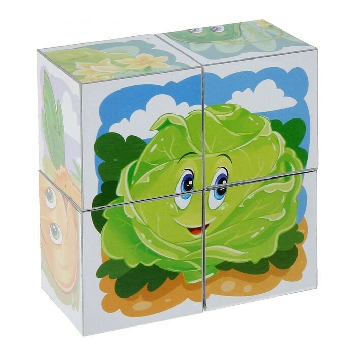 Купить Кубики "Овощи" (в коробке) 4 шт Десятое Королевство 00629ДК