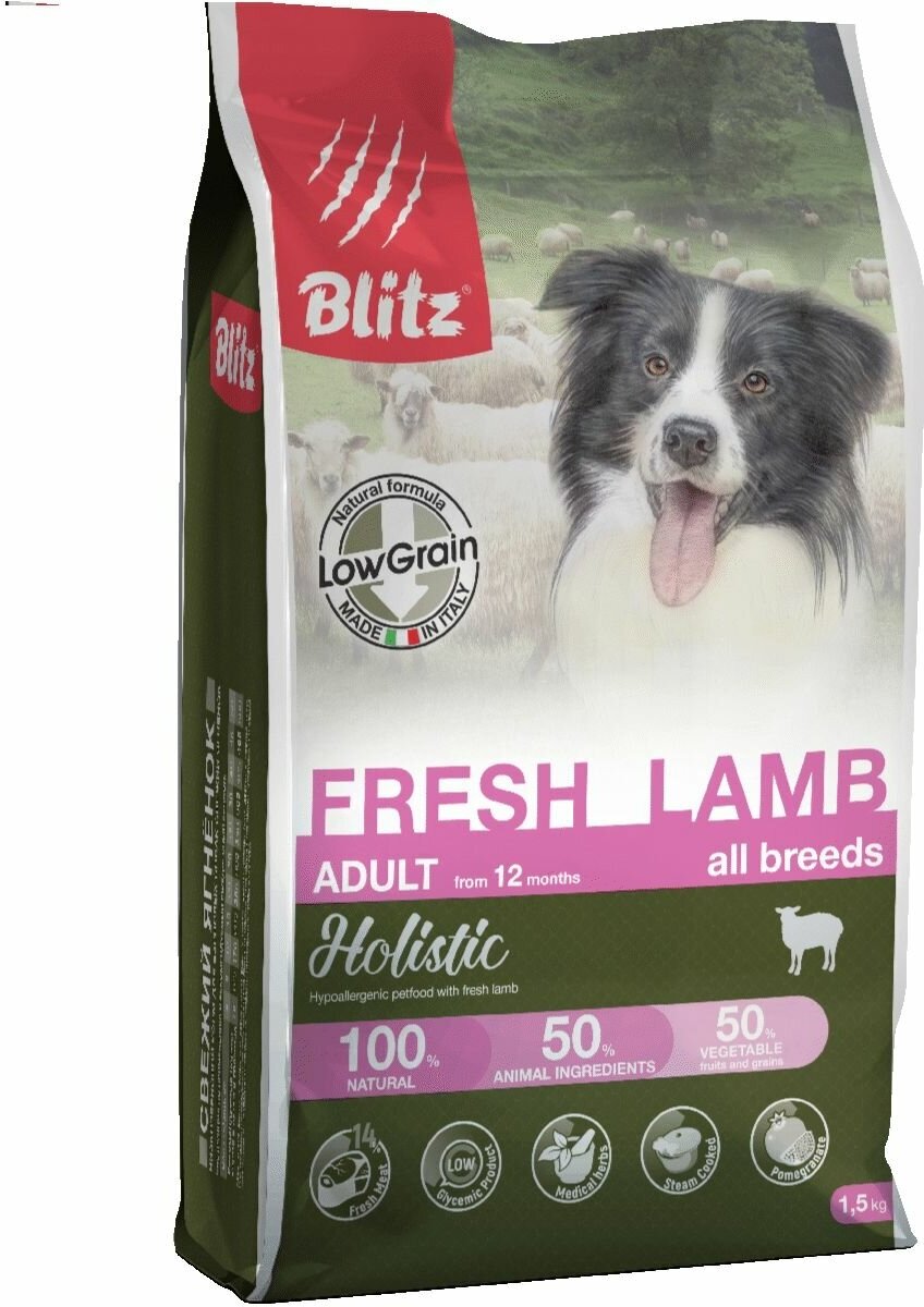 BLITZ HOLISTIC FRESH LAMB низкозерновой корм для взрослых собак всех пород, Ягненок 1,5кг.