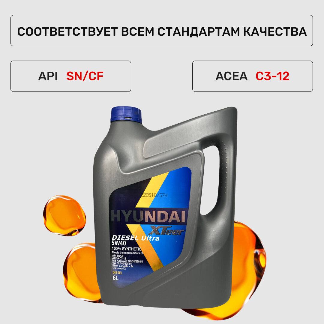 Масло моторное 5w40 hyundai xteer 6л синтетика diesel ultra hyundai 1061223