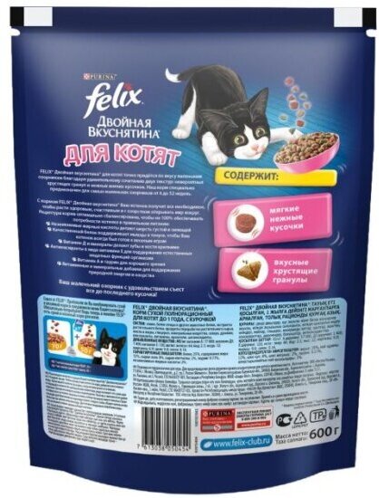 Felix Сухой корм для котят Двойная вкуснятина 1242589112509815, 0,6 кг, 42802